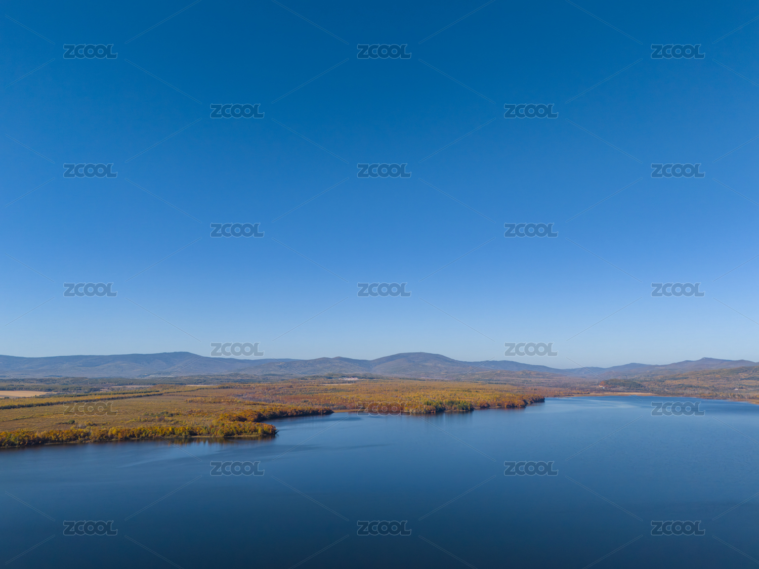 秋日山林湖景俯瞰图