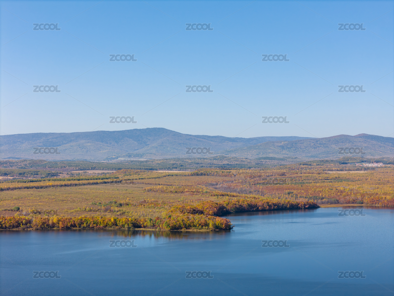 黑龙江鹤岗萝北县龙江三峡秋日山林与河流