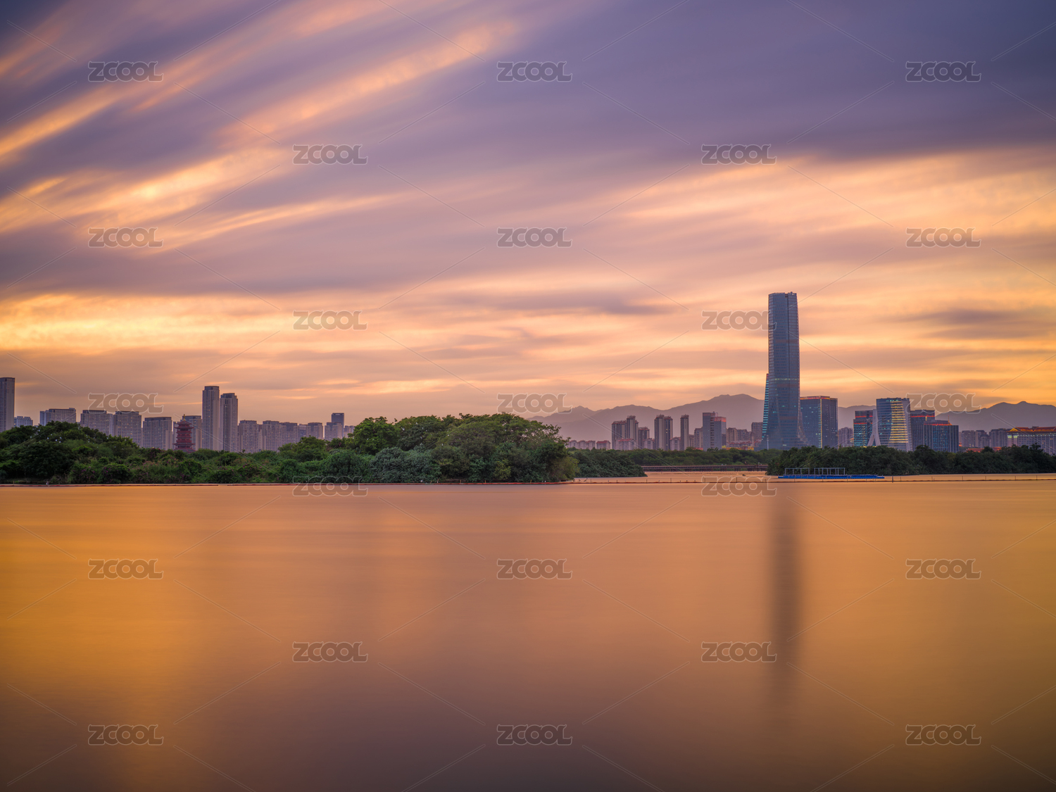 中国深圳宝安滨海文化公园城市天际线
