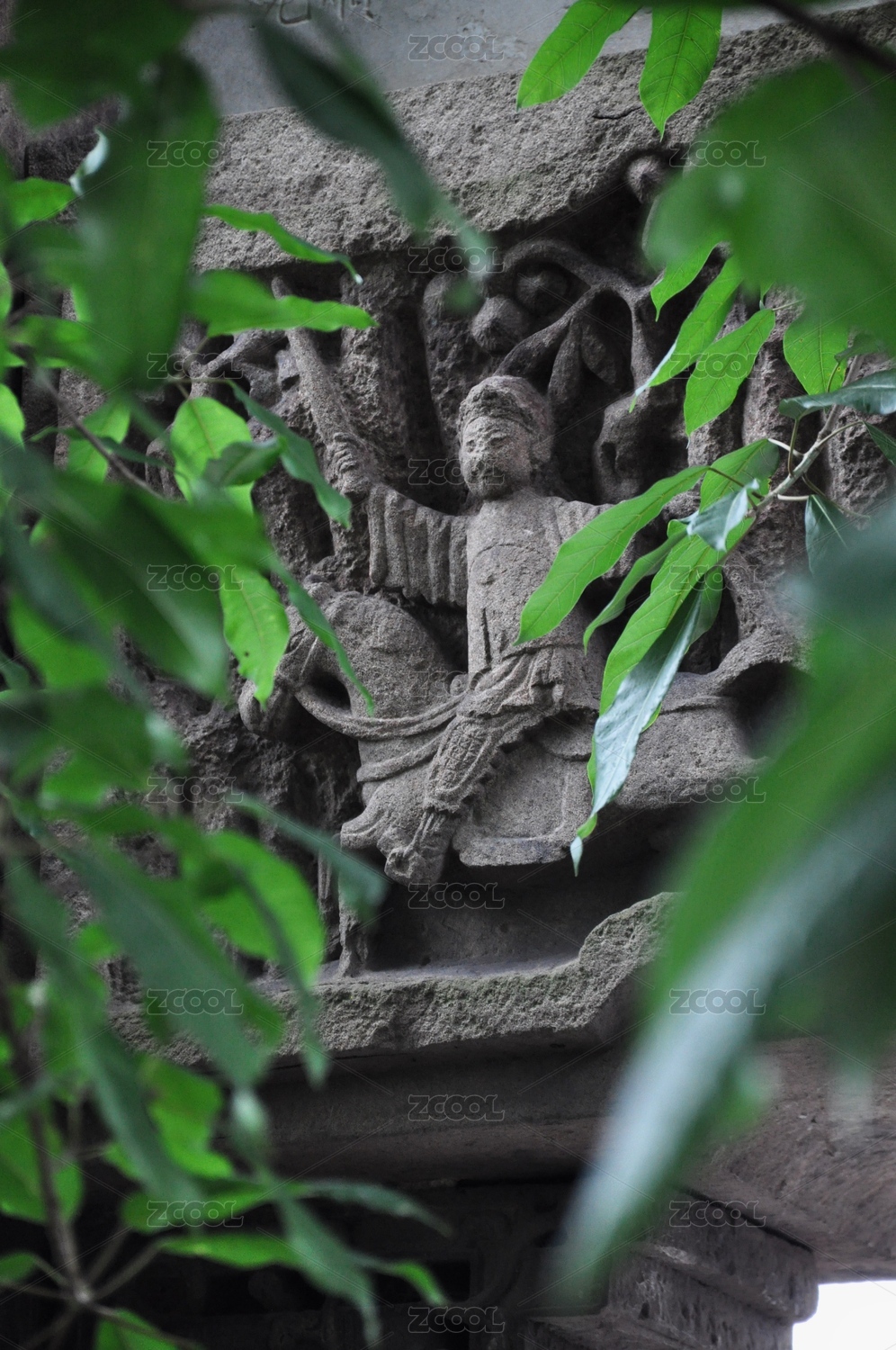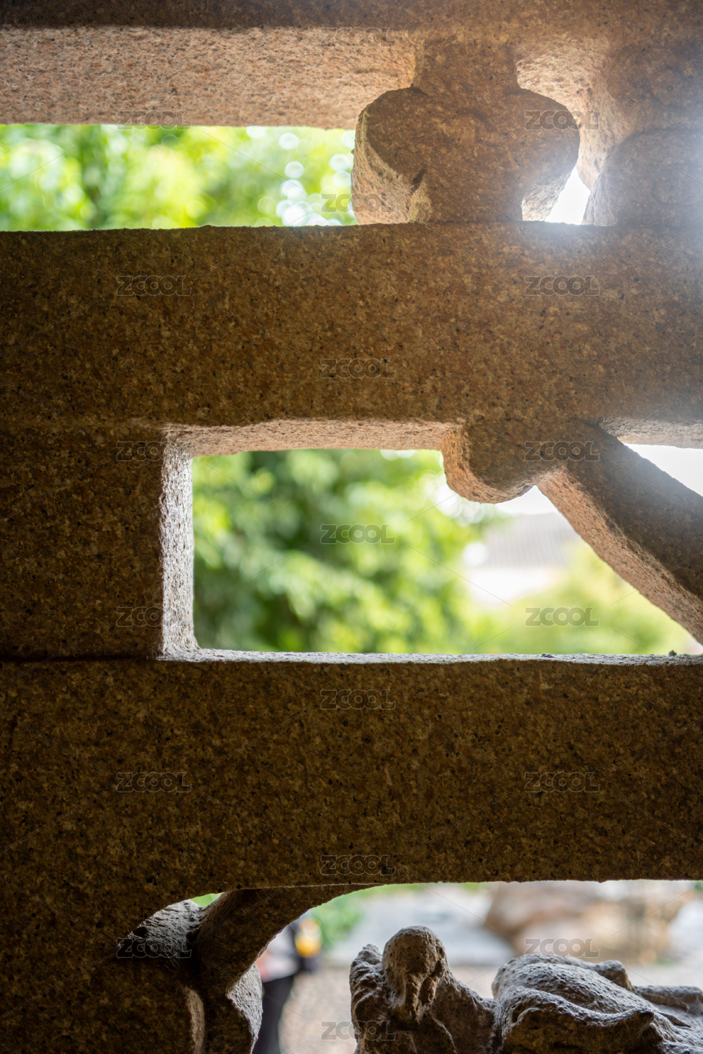 福建龙岩长汀县卧龙书院石雕栏杆间的光影