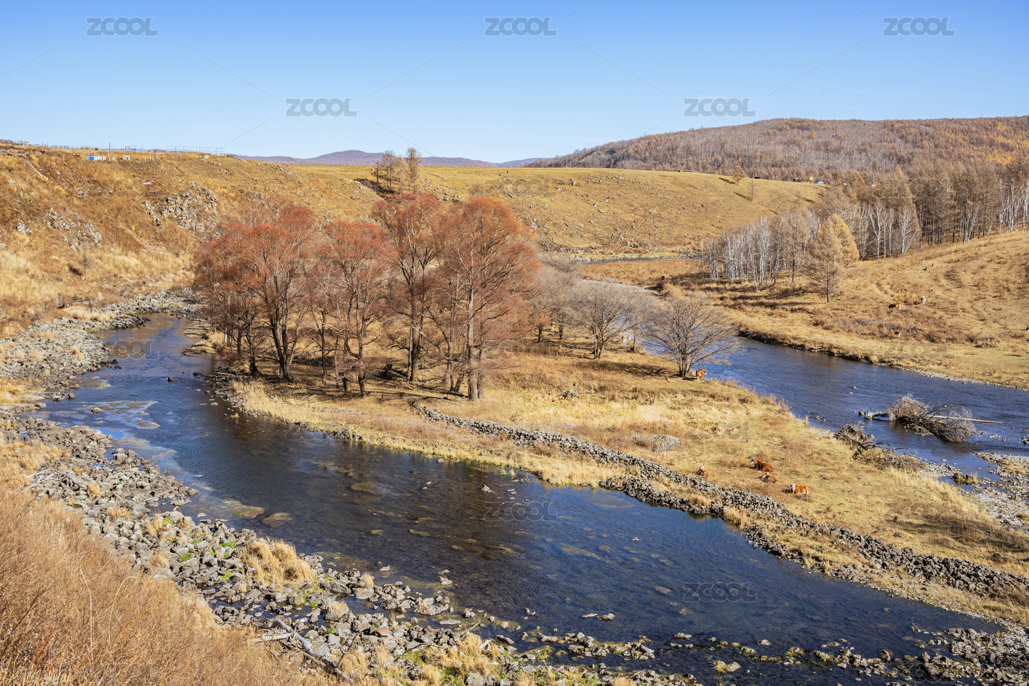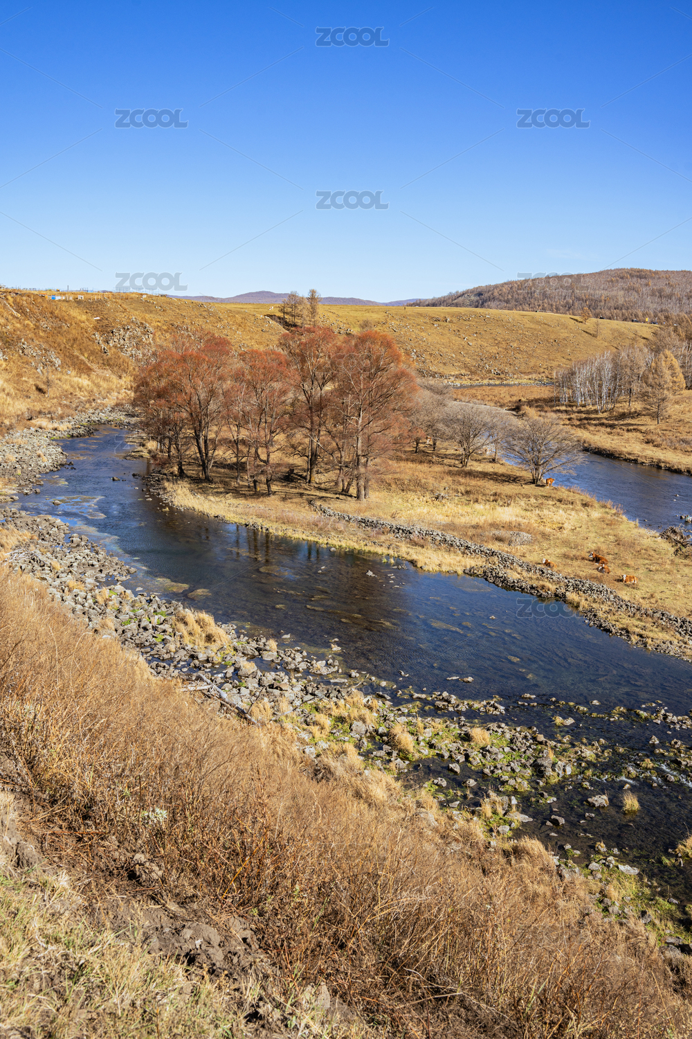 中国内蒙古阿尔山国家森林公园不冻河秋景