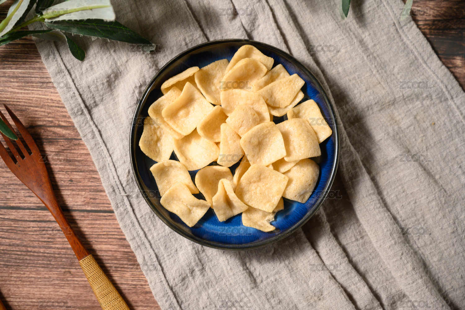 桌面上的盘子里的美味可口的虾片