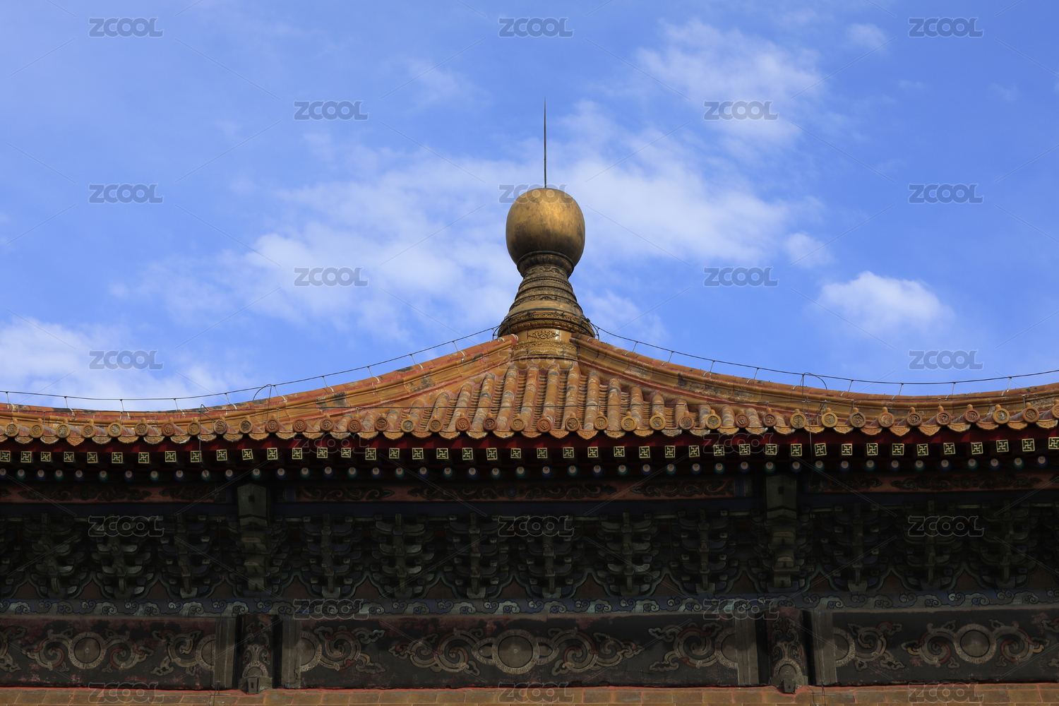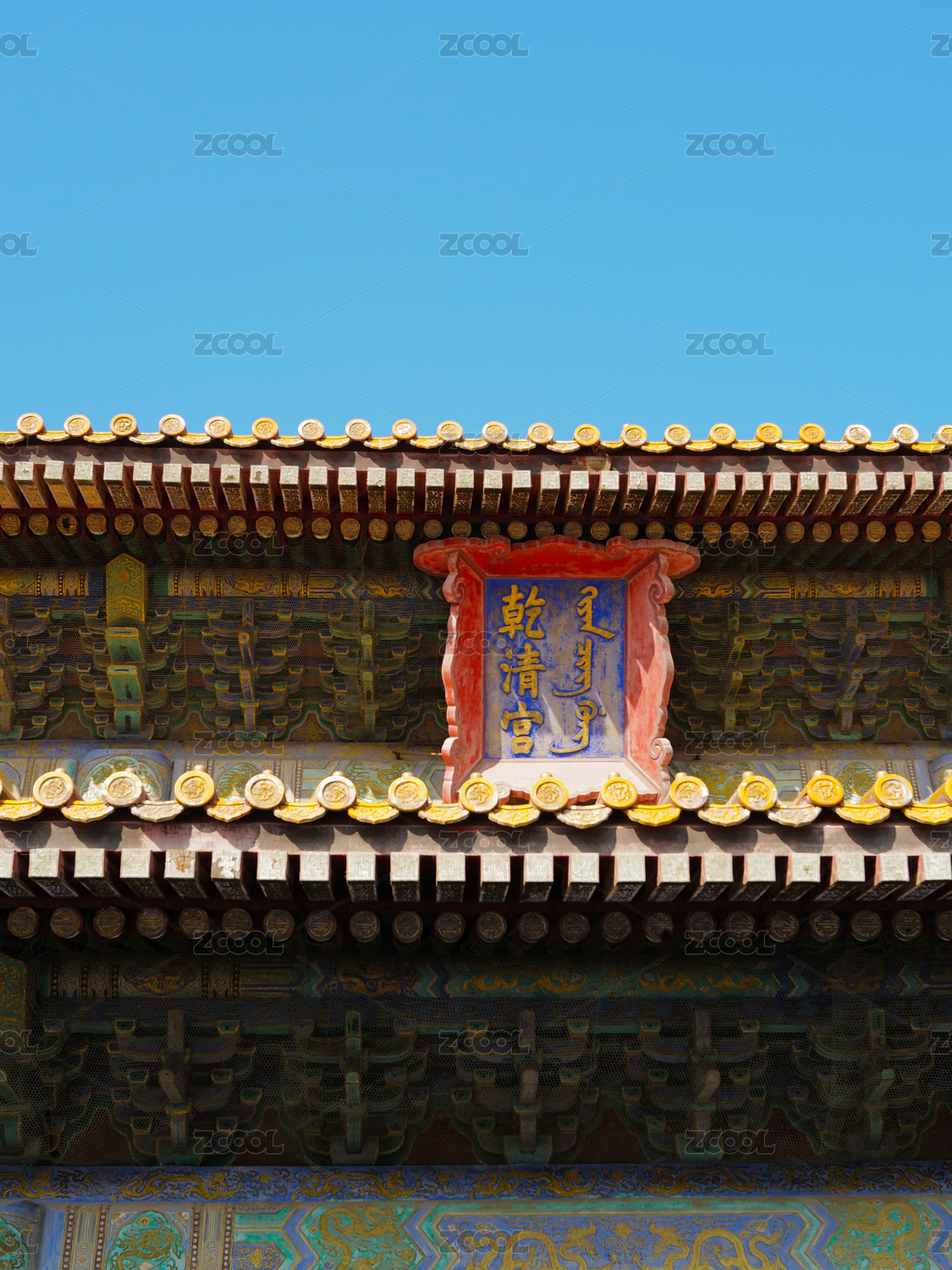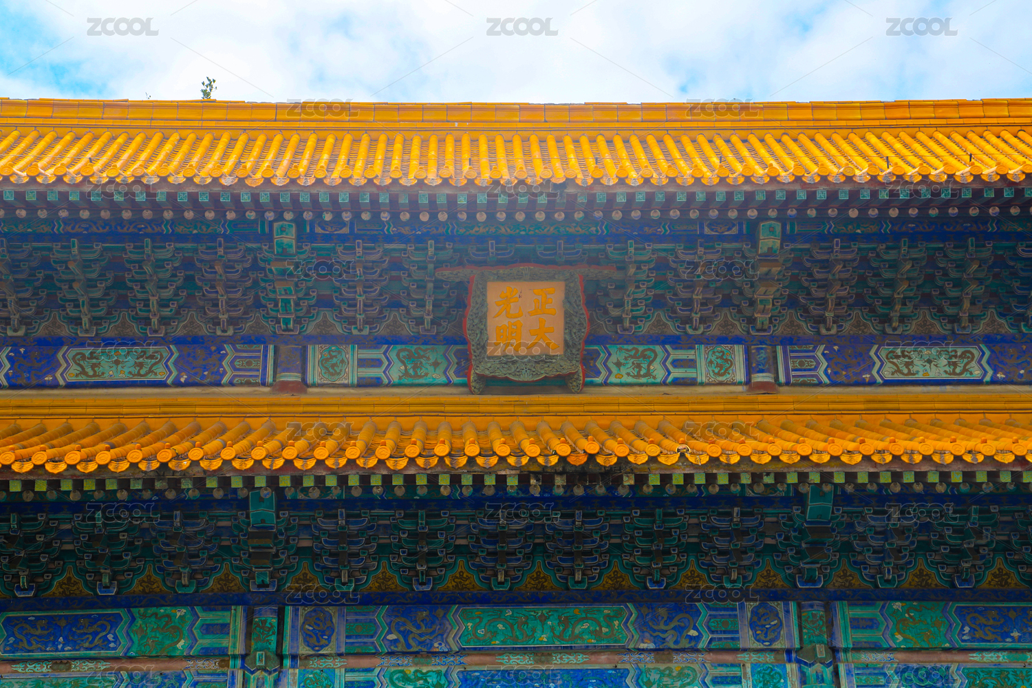 古代保护建筑宫殿皇宫的多层屋顶局部特写