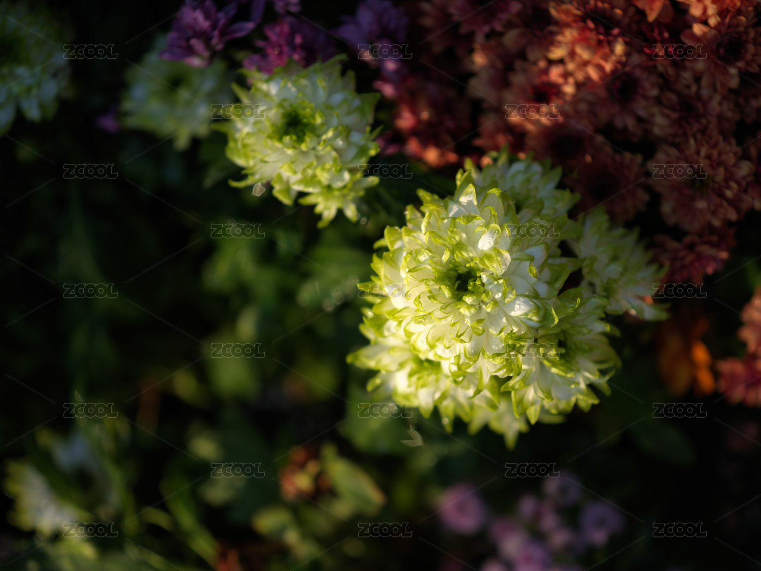 绿瓣菊花与多彩花丛