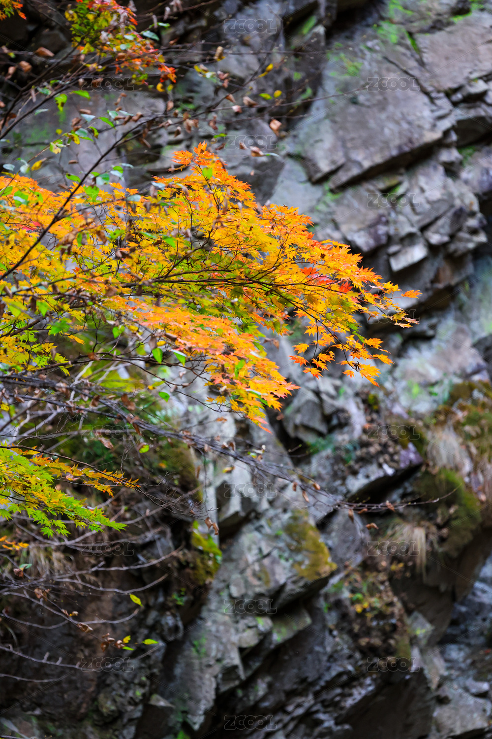 神农架景区岩壁上的青苔