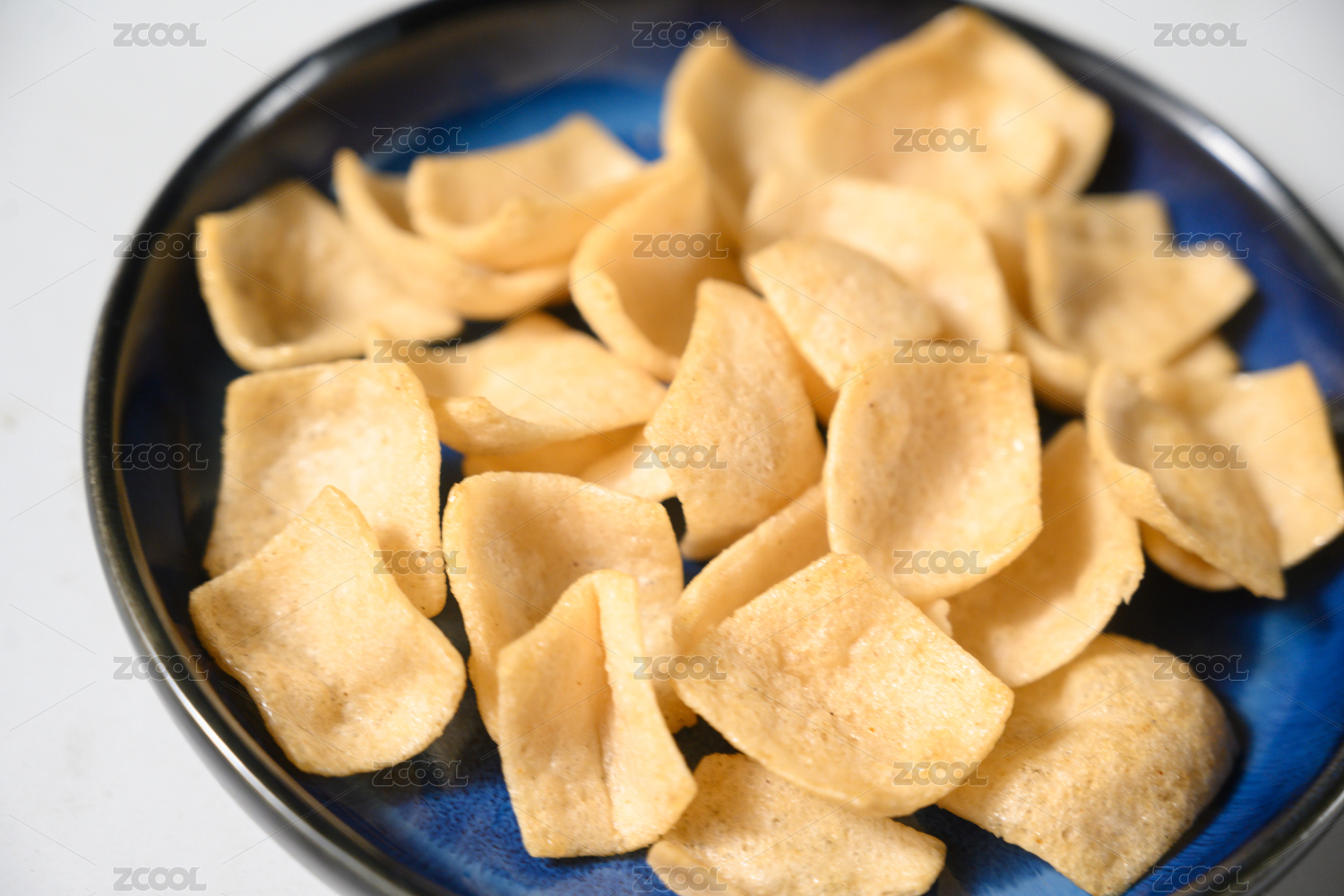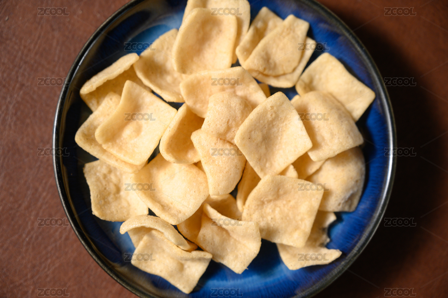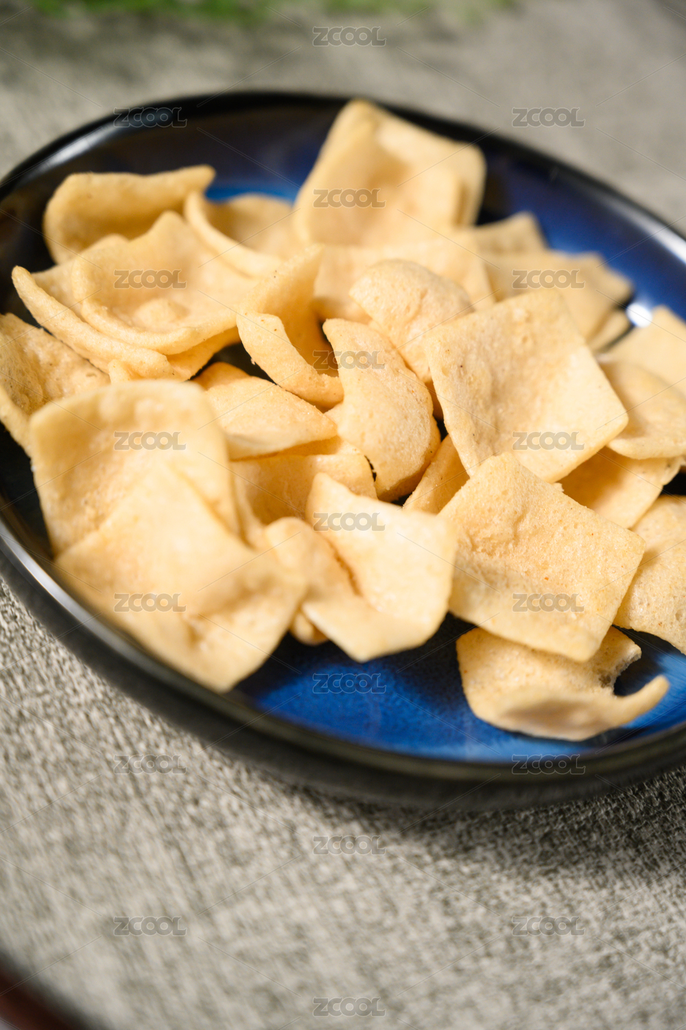 桌面上的盘子里的美味可口的虾片