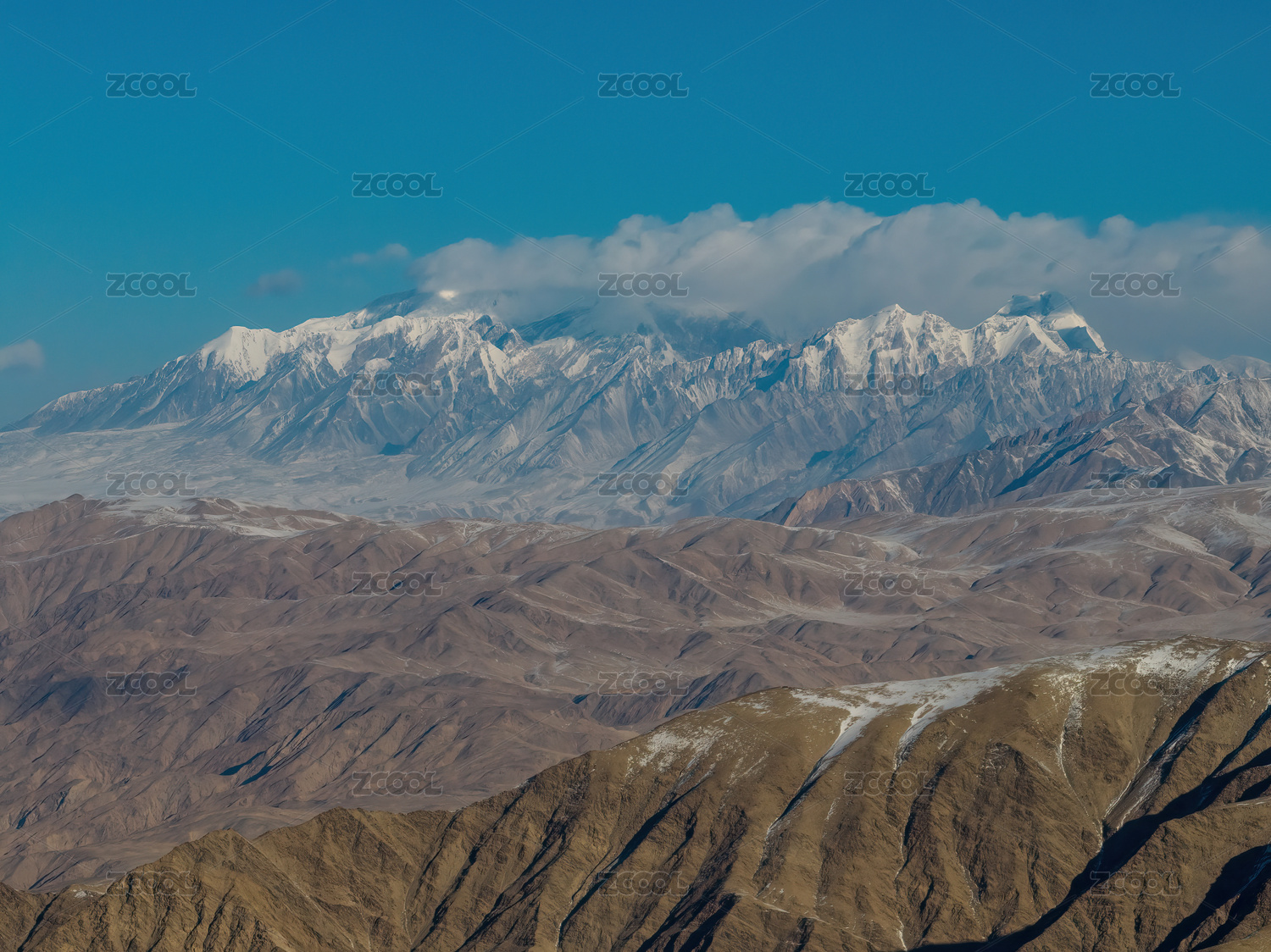 中国新疆天山博格达峰和附近山体飞机上拍摄