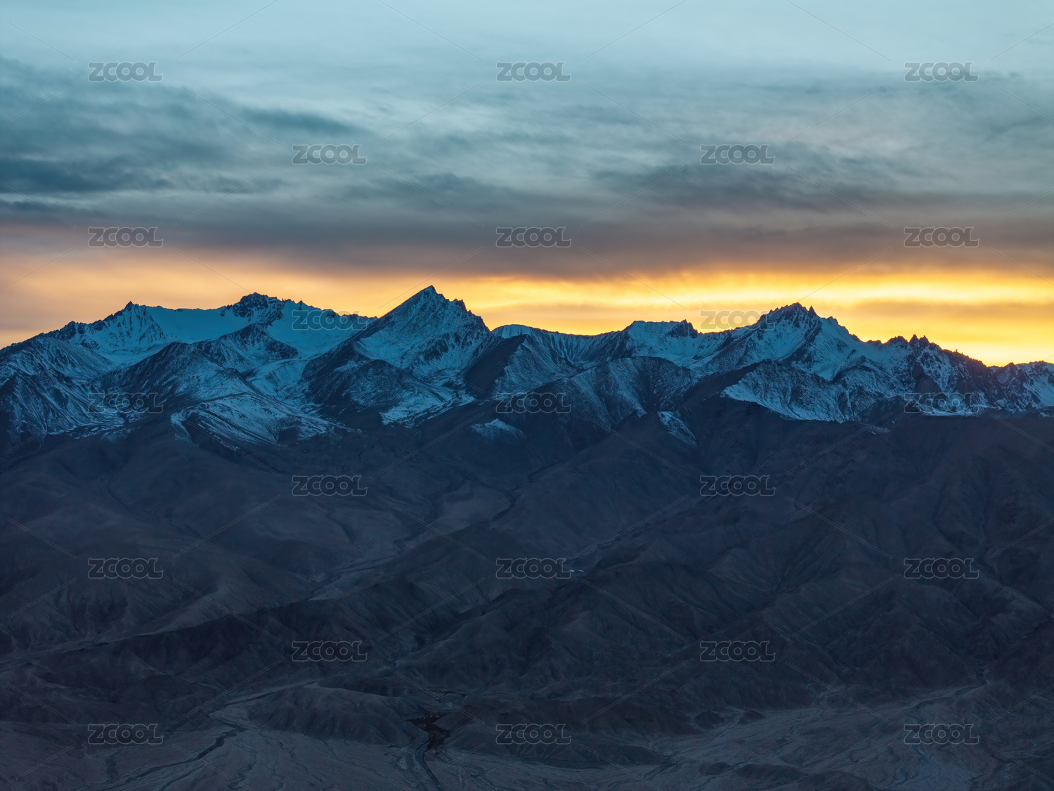 中国新疆喀什帕米尔高原喀喇昆仑山日出航拍