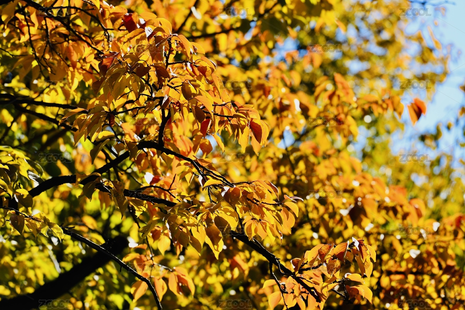阳光下满画幅秋天金黄色树叶叶子的自然风景