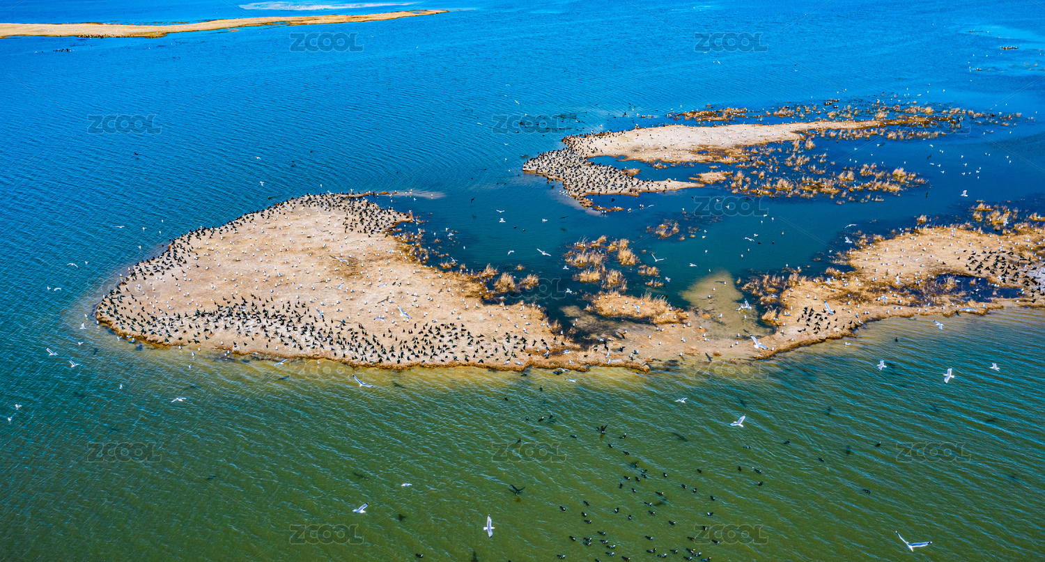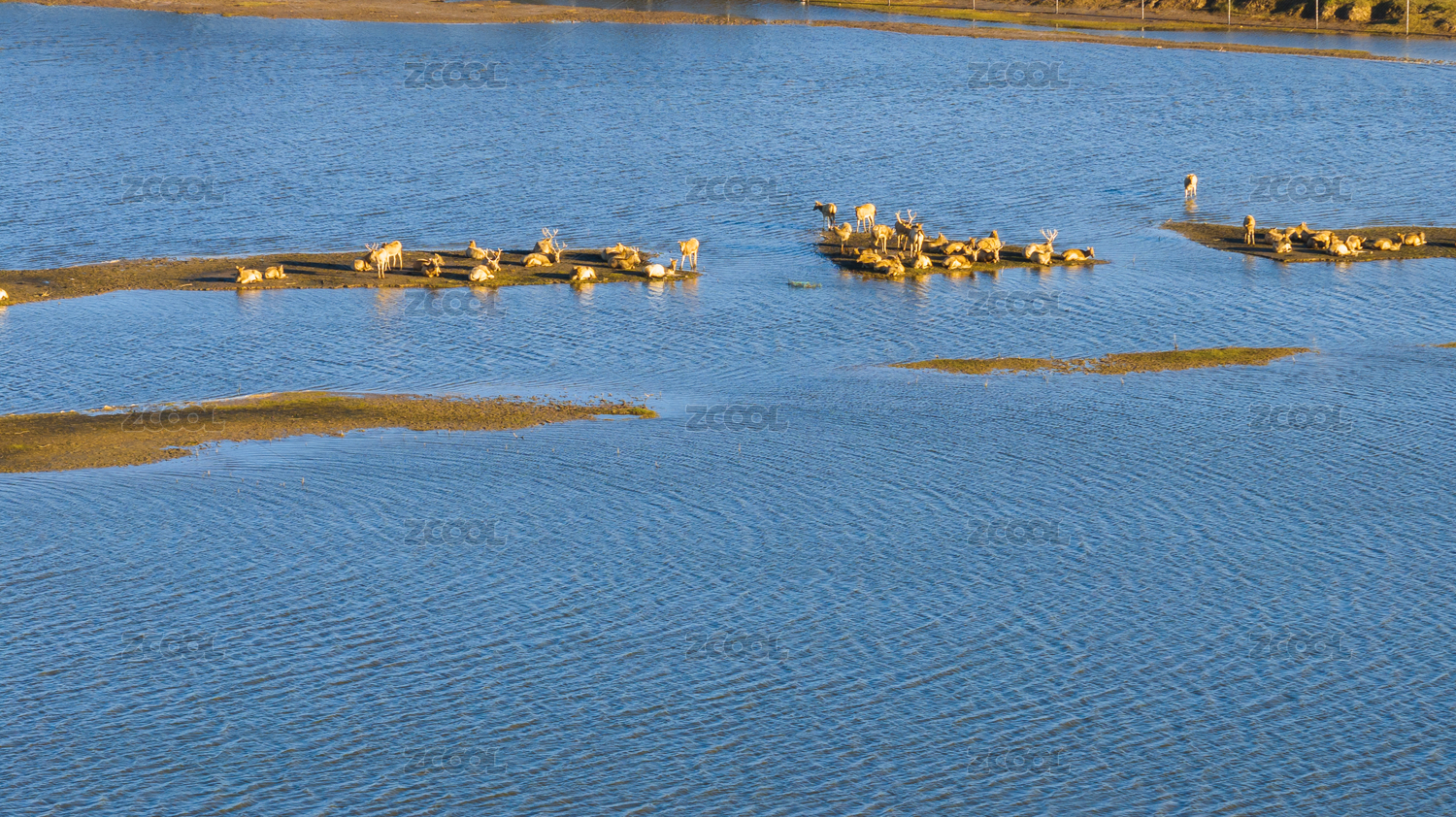 航拍江苏盐城大丰黄海之滨野鹿荡湿地麋鹿欢