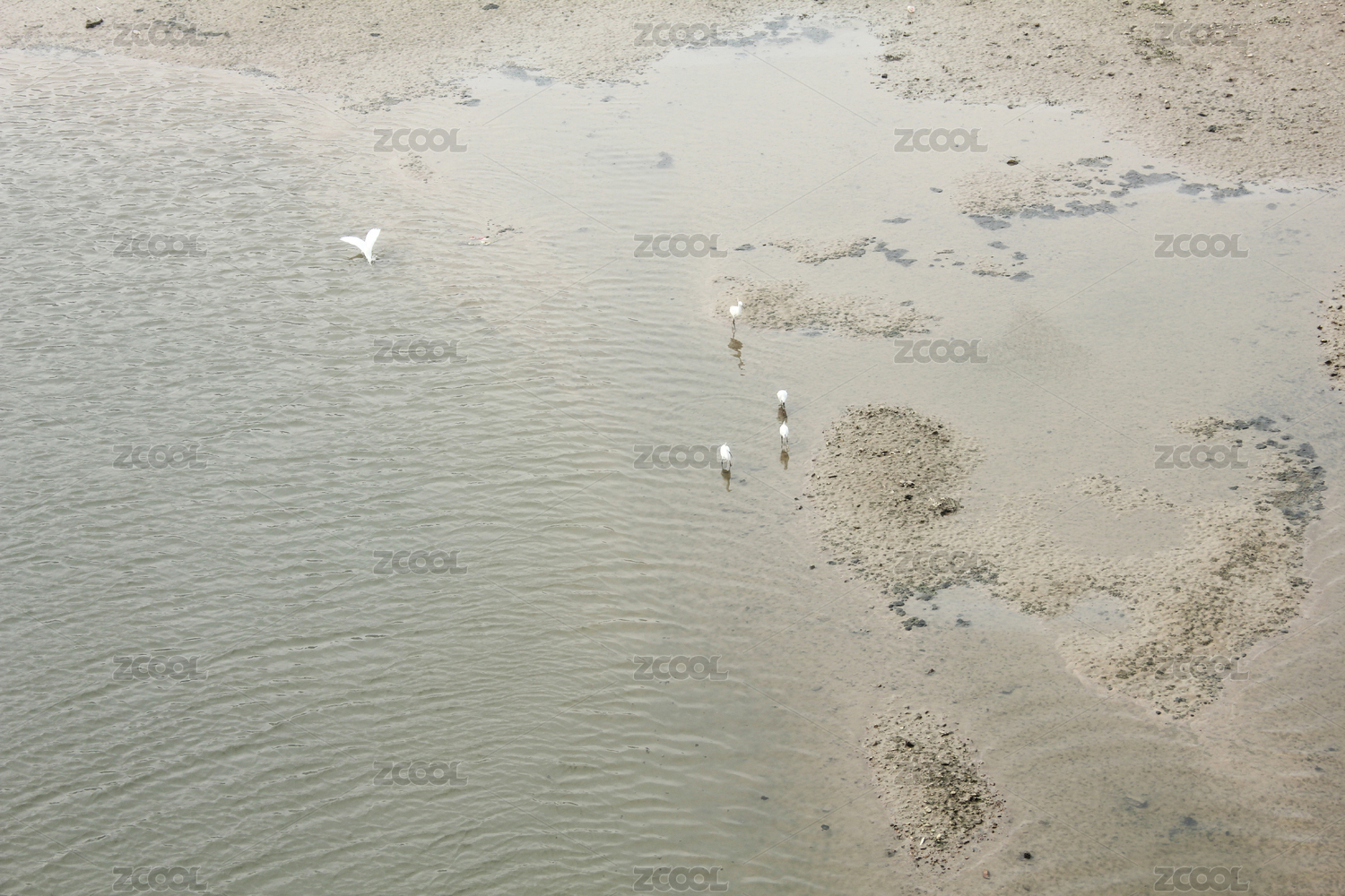 黄昏时分在福州闽江三江口湿地自然生态区捕食的白鹭
