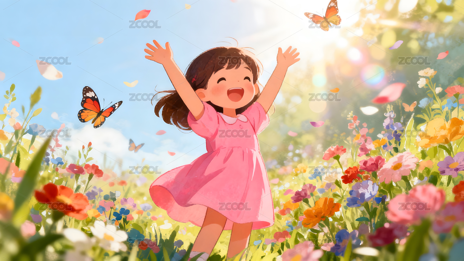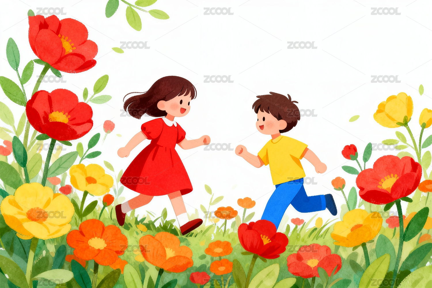 可爱,卡通,动物,表情,治愈,形象,插画,平面,彩色,花朵