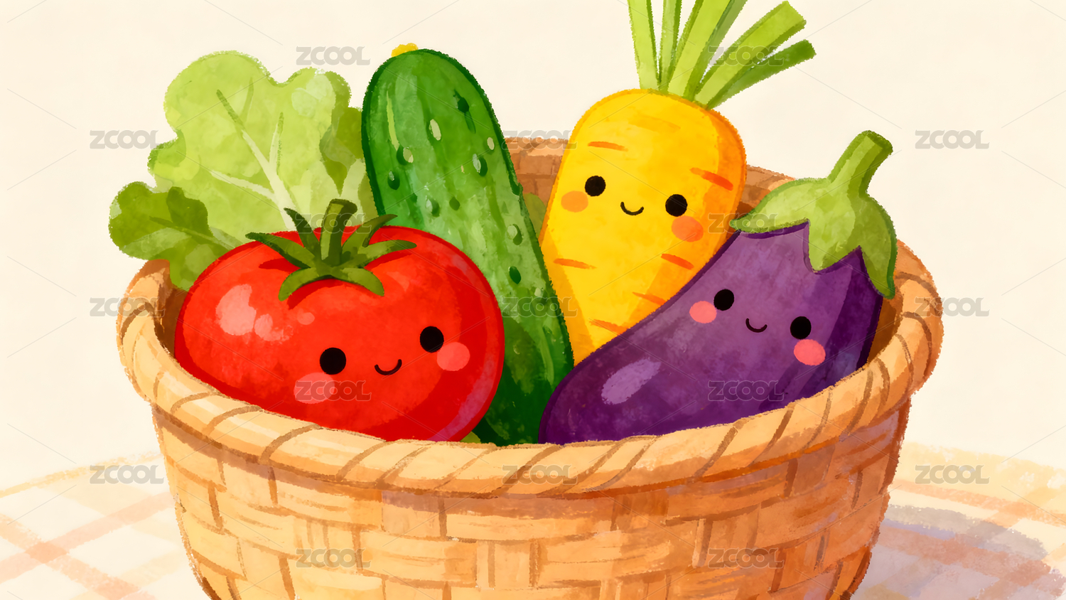 可爱,插画,平面,蔬菜,食物,美食,可口,西红柿,南瓜,青椒