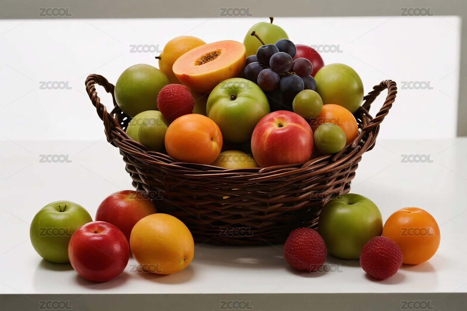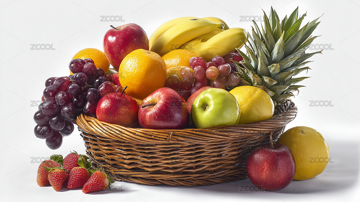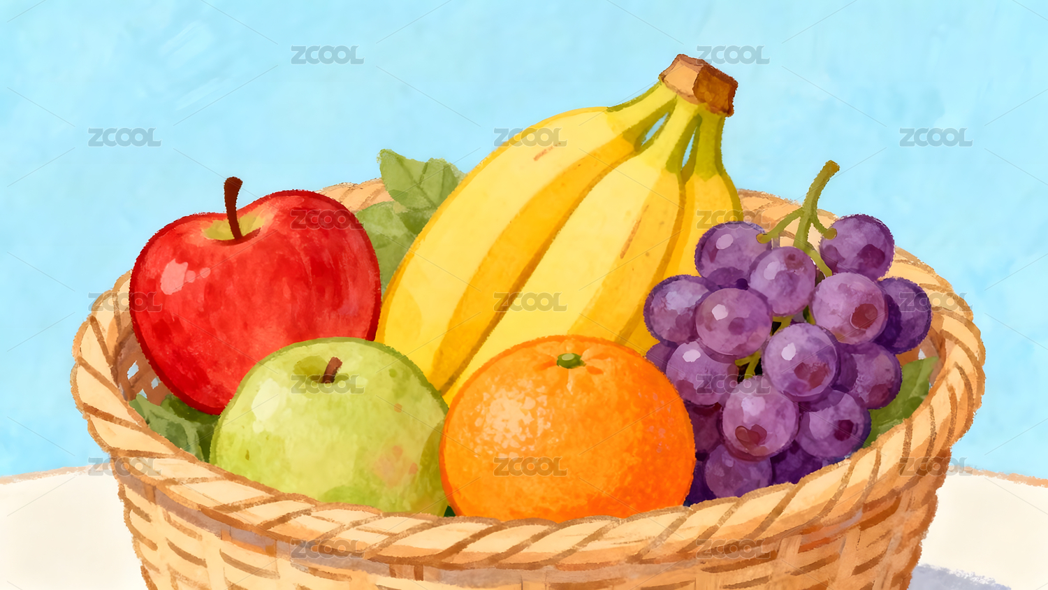 装满多样水果的编织篮