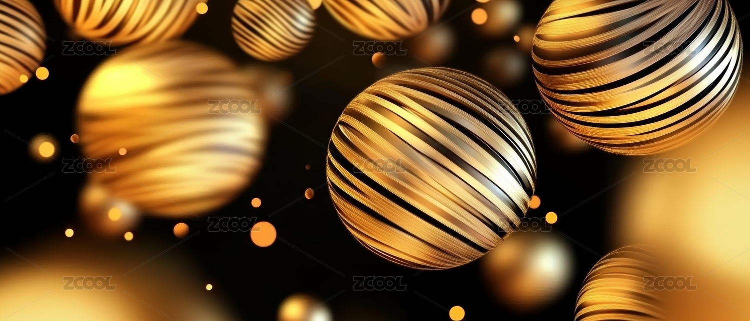 金色球体金属感庆典装饰场景