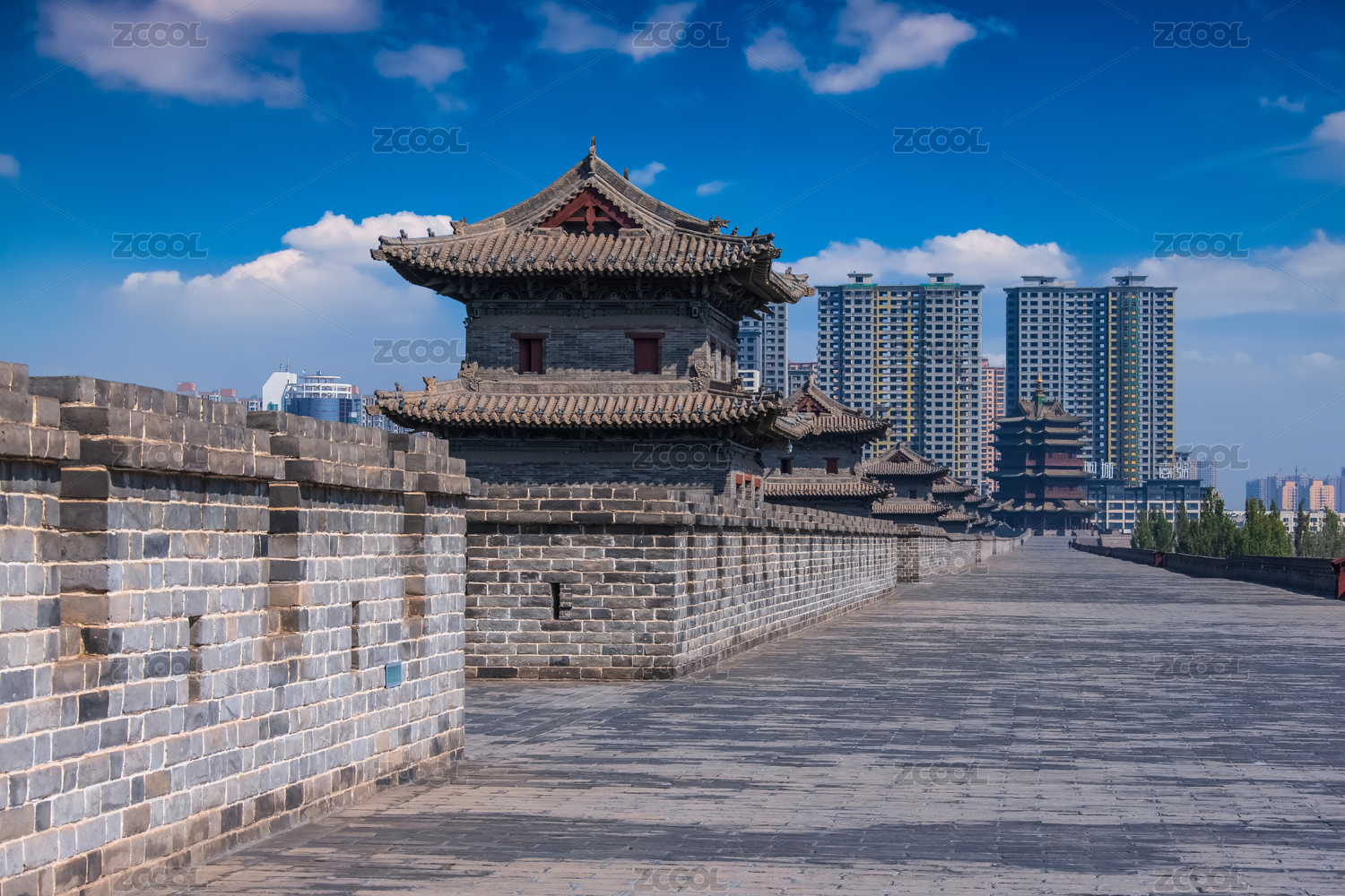 中国山西省大同市明代古城墙洪字楼园林建筑