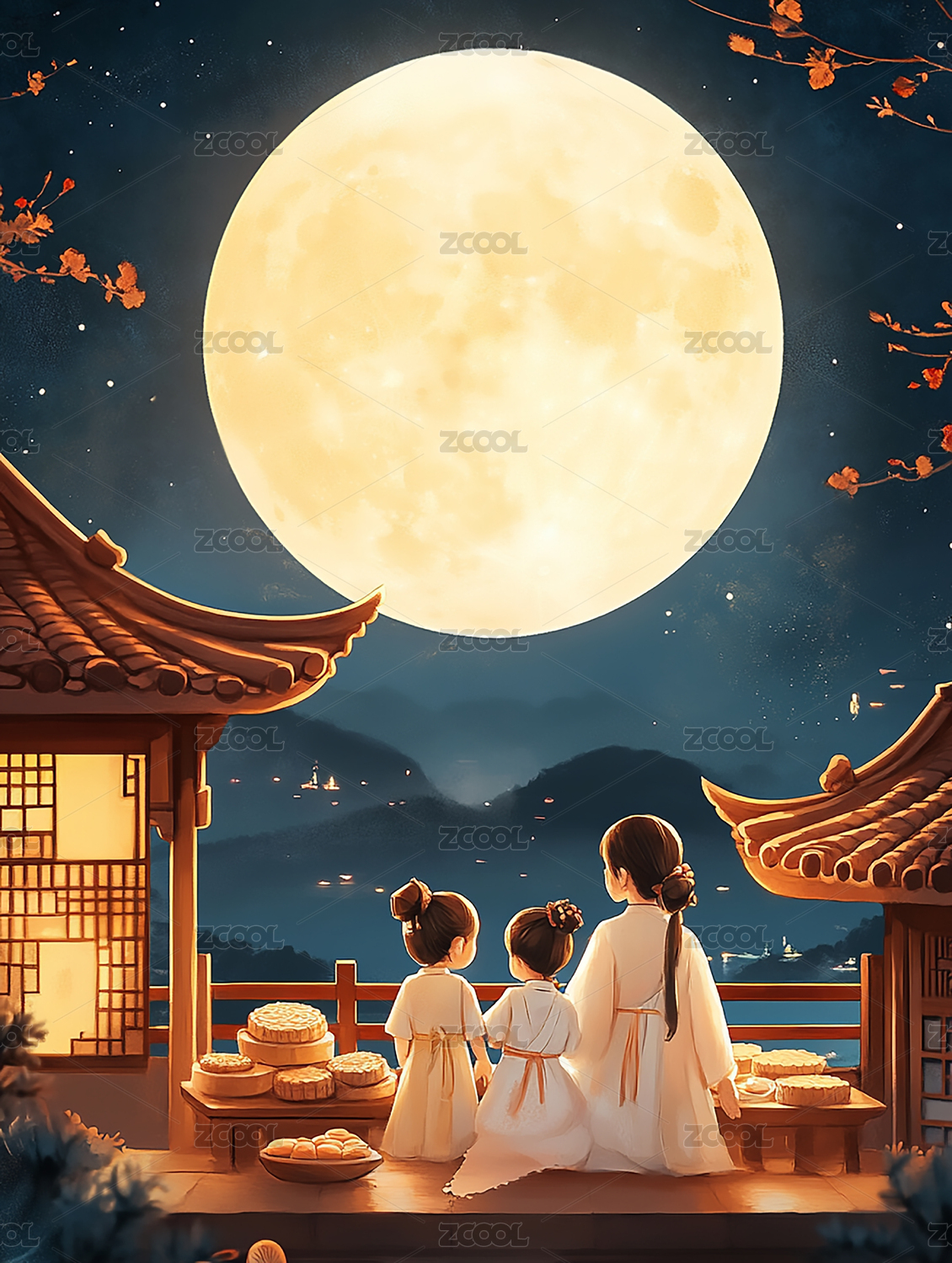 庭院中的中秋团圆夜