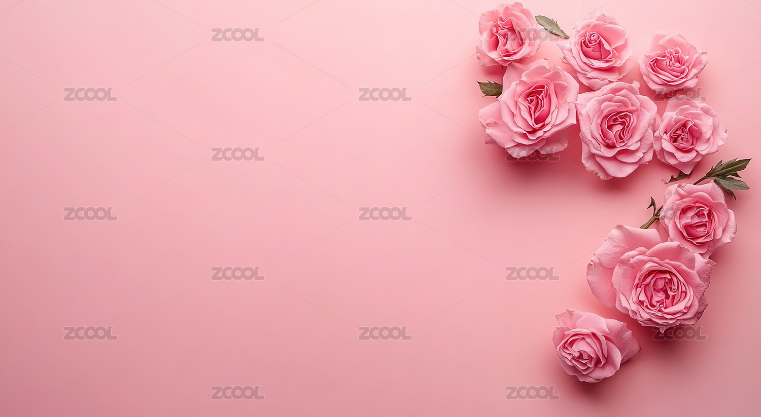 爱心和玫瑰花留白粉色背景