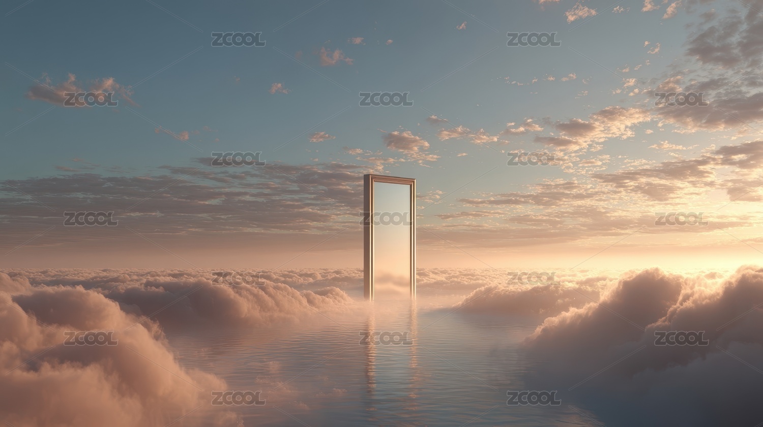 粉色云朵间的一扇敞开的门