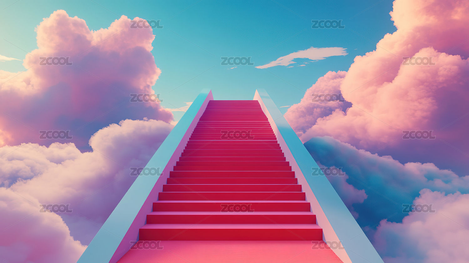 天空白云环绕的彩色台阶阶梯特写插画绘画