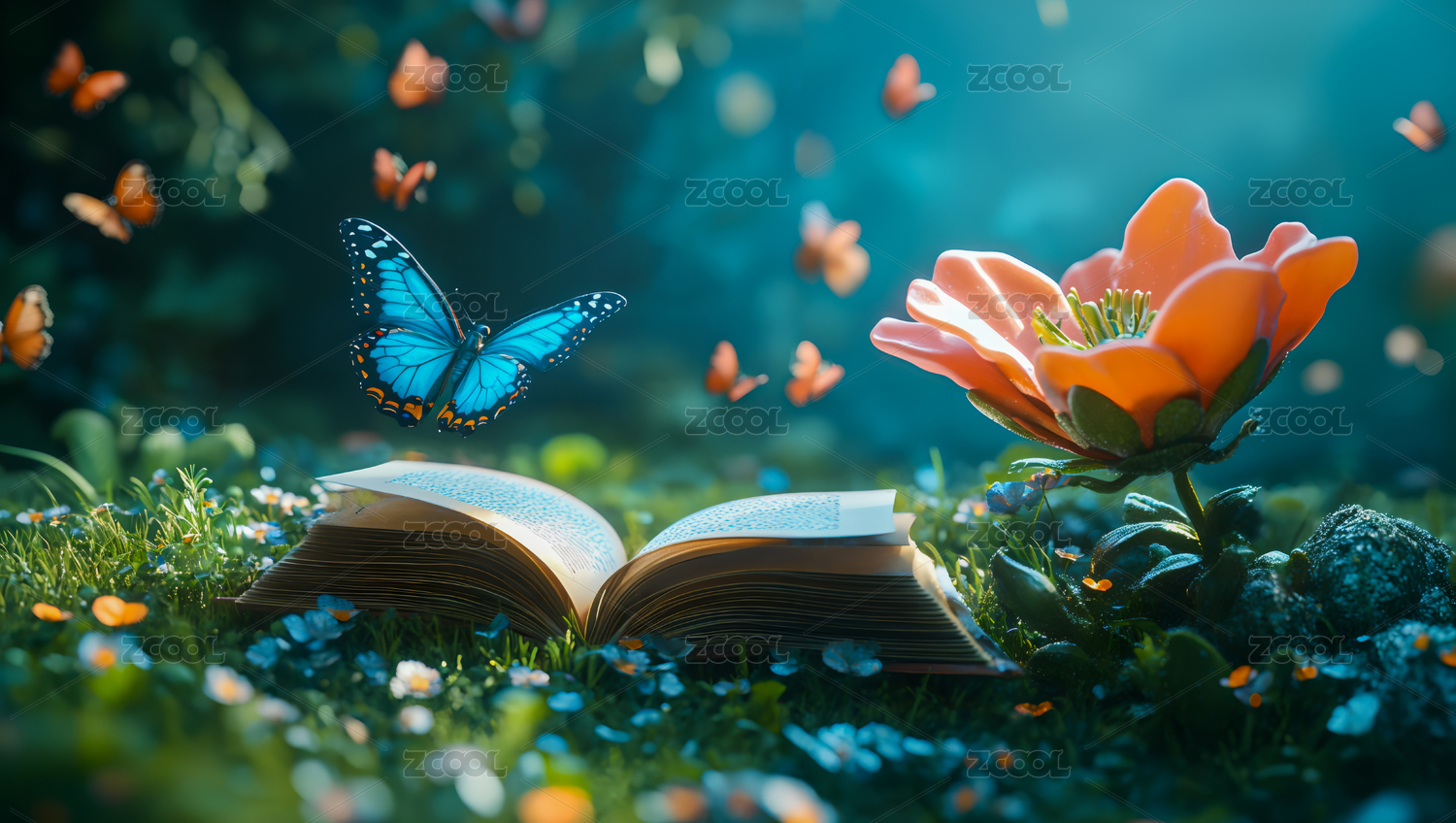 创意,植物,自然,光影,空间,绿色,静态,生机,草地,书本