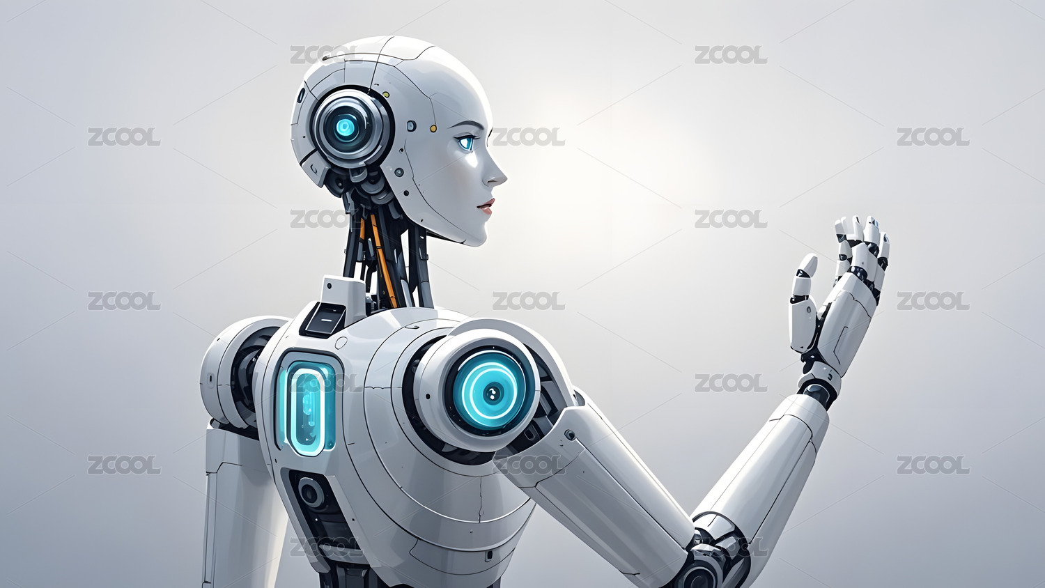 机器人侧身手抬起的优雅画面