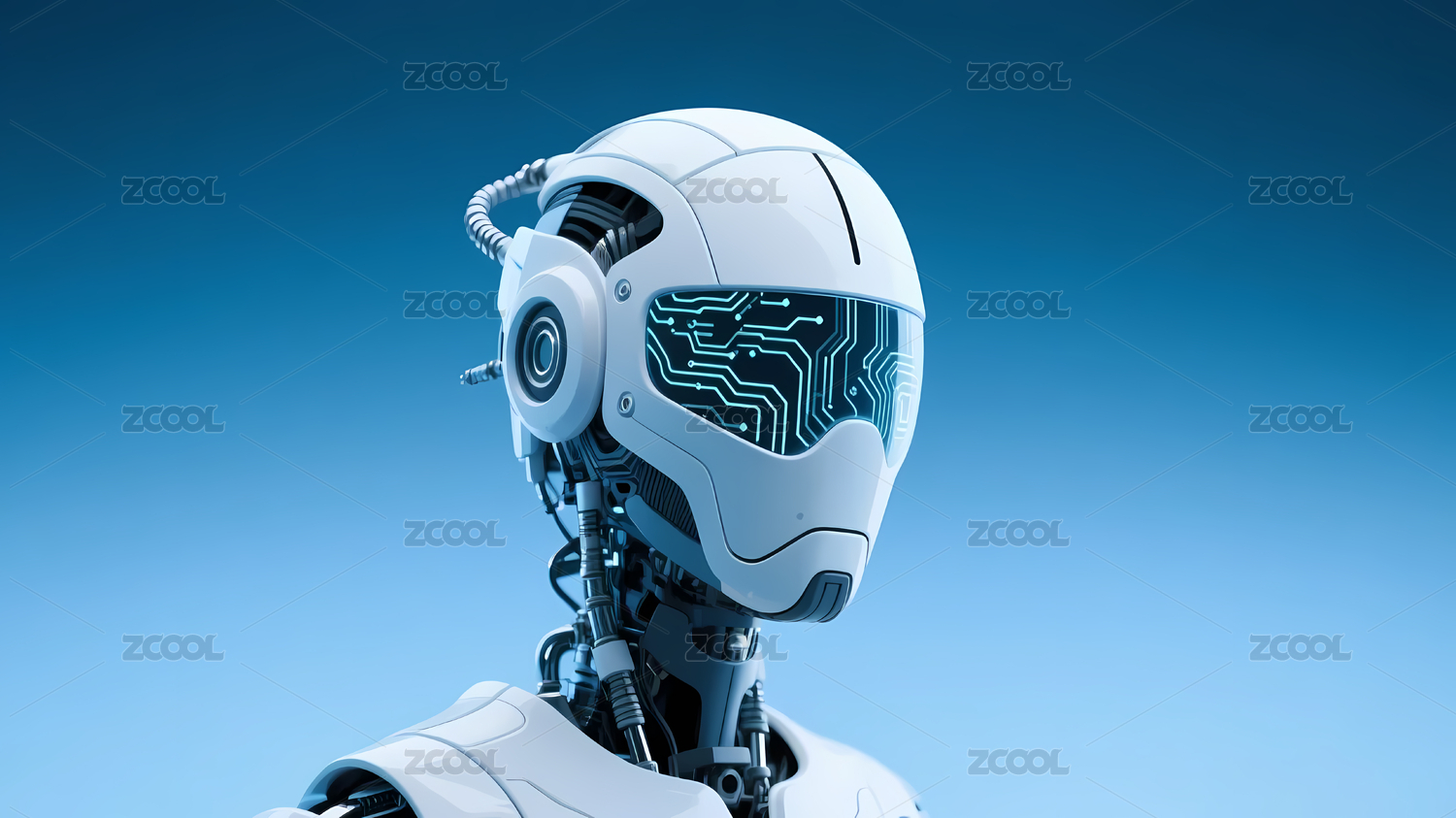 蓝黑电路白色机器人