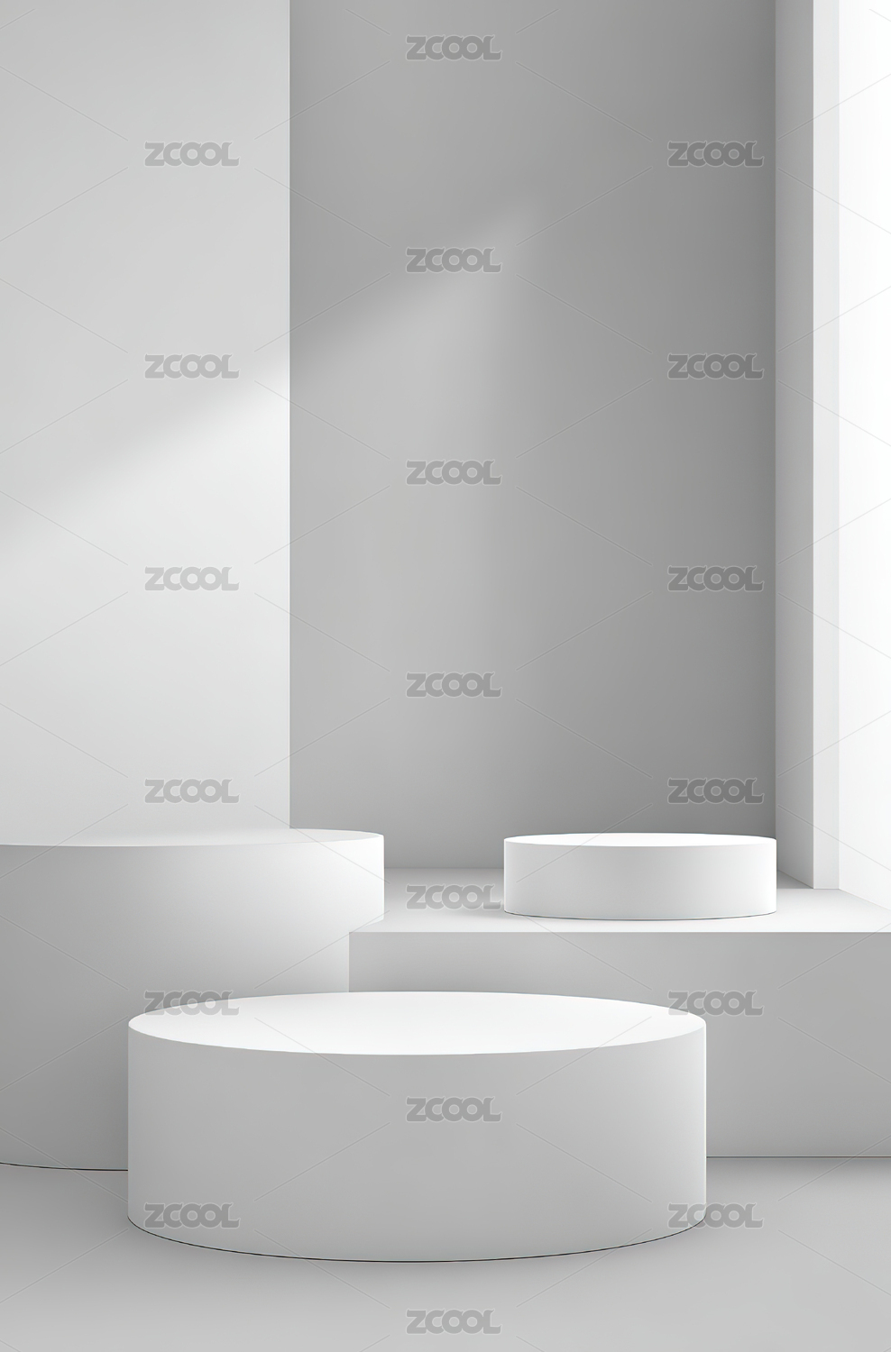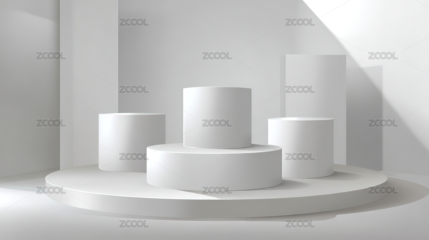 白色圆柱体置于简约空间