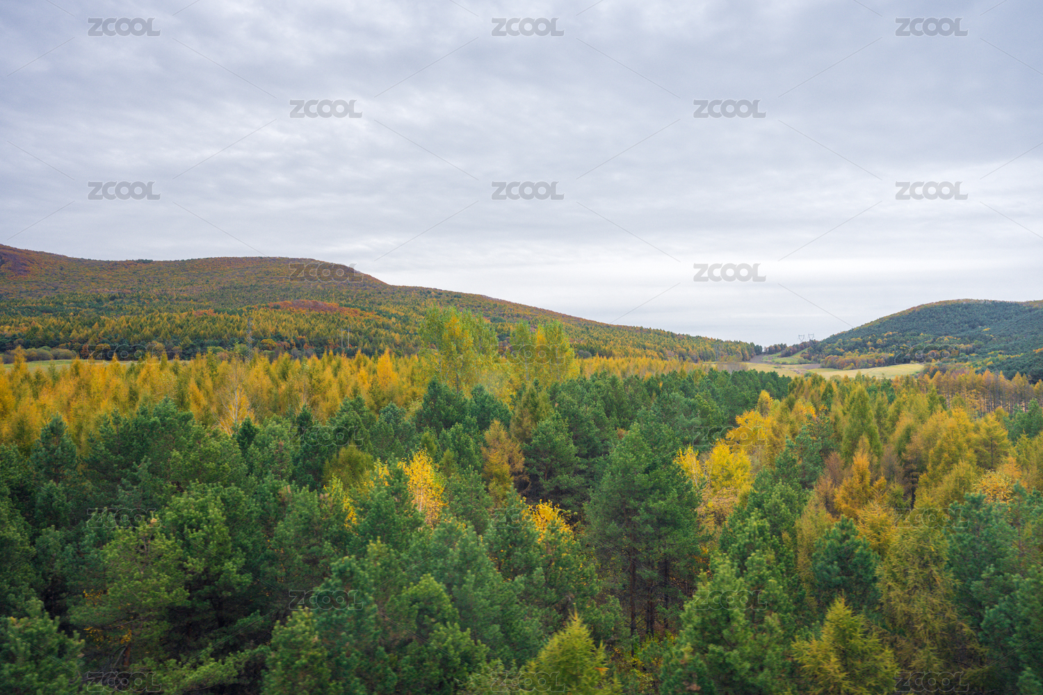 中国大兴安岭秋天彩色的山林
