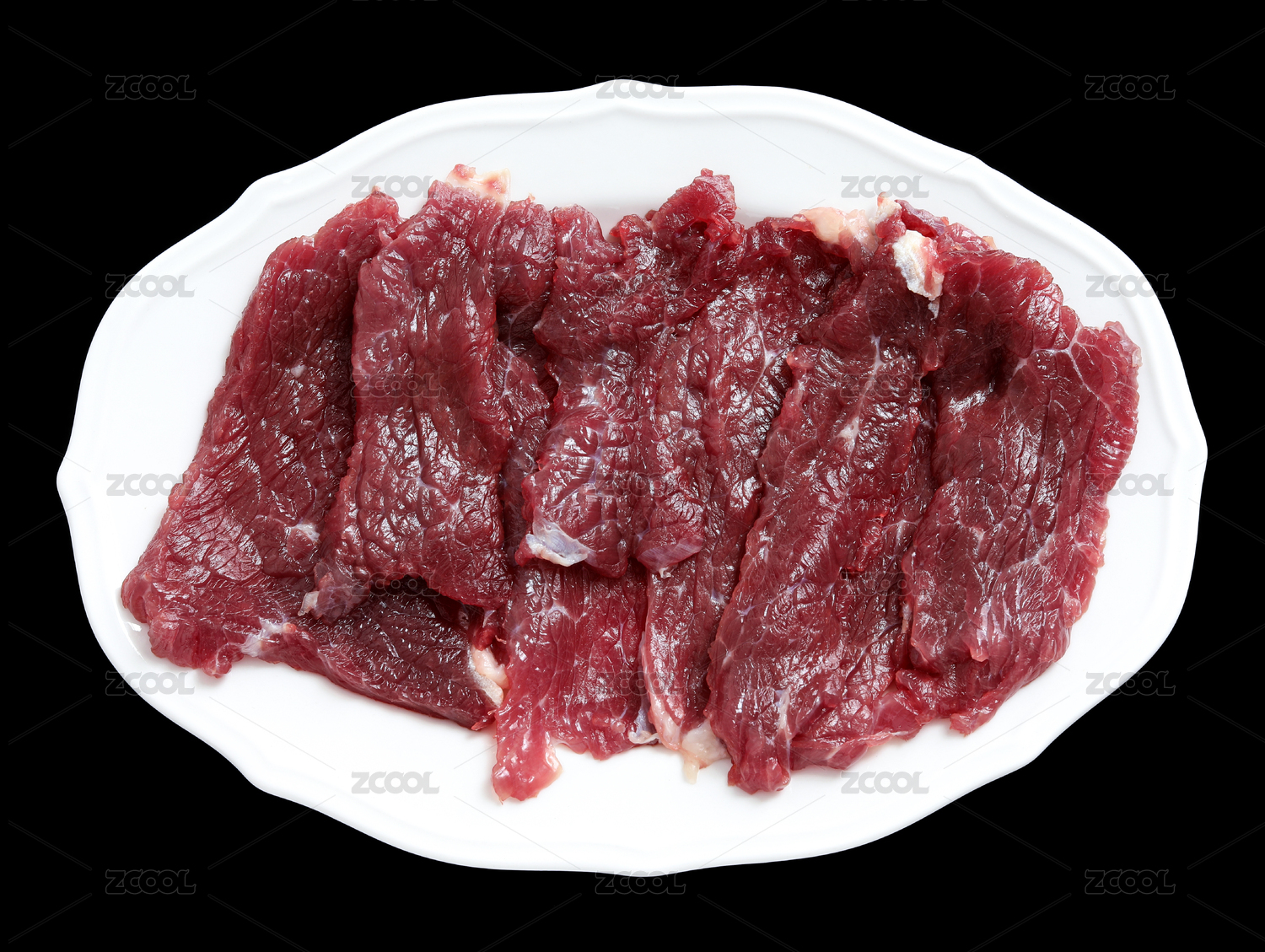 一碟切好的火锅食材牛肉片