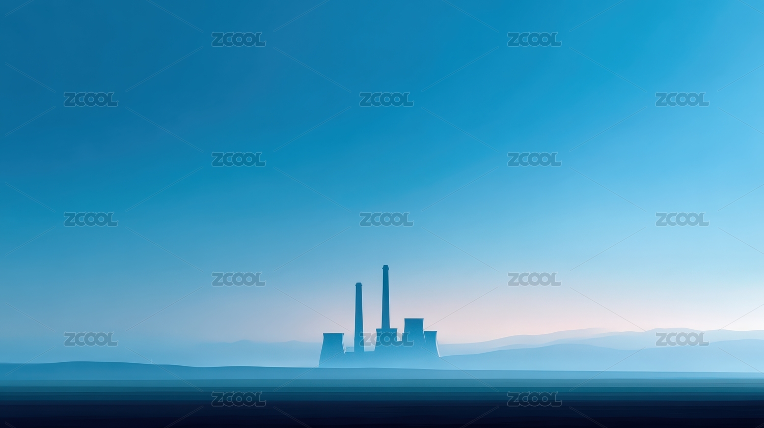 夕阳下的烟囱冒出的烟在天空中的剪影