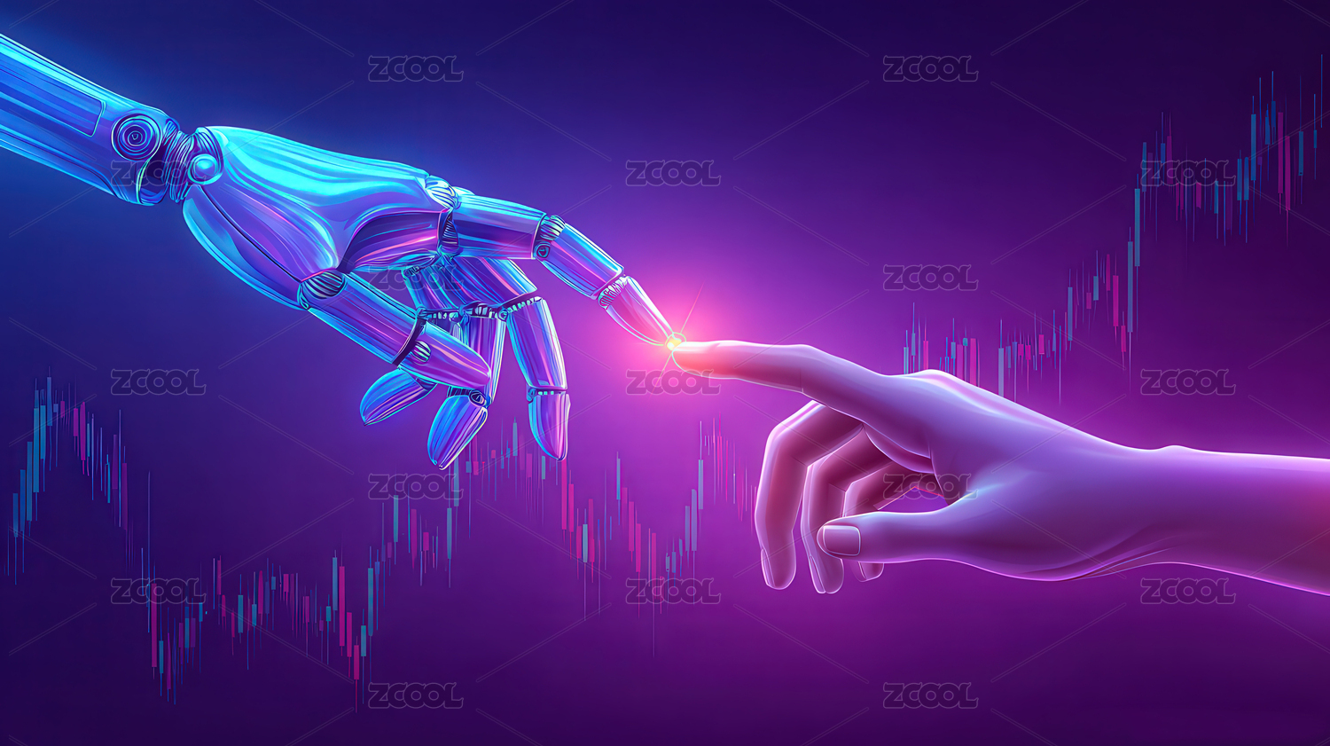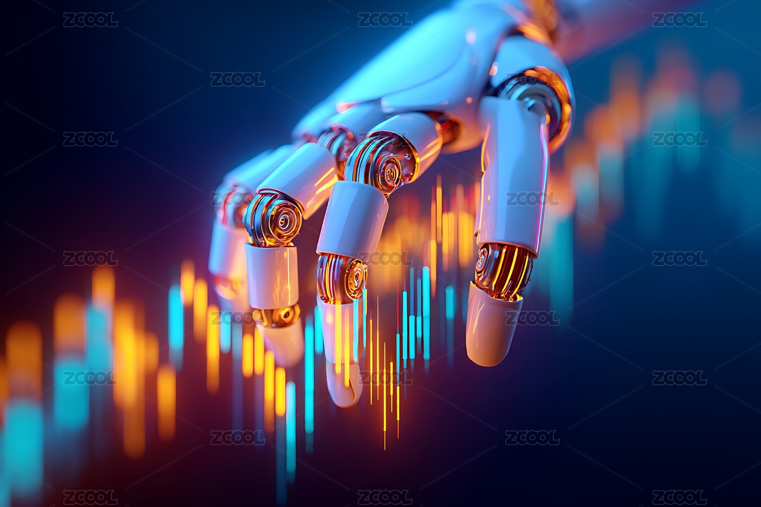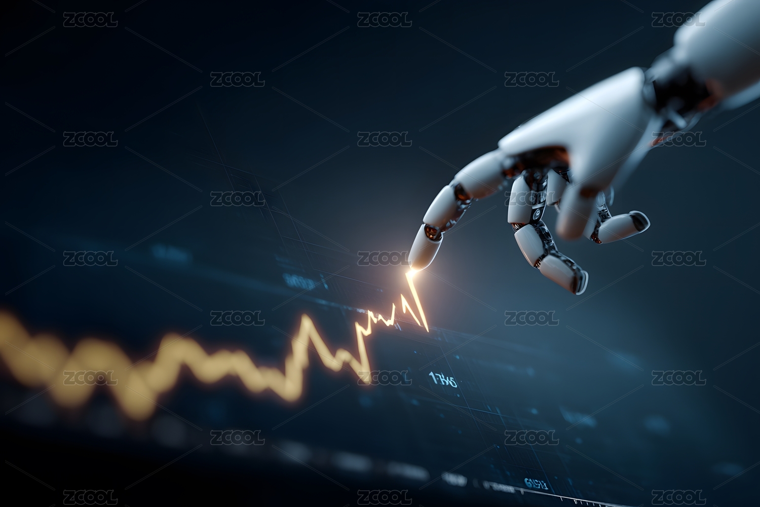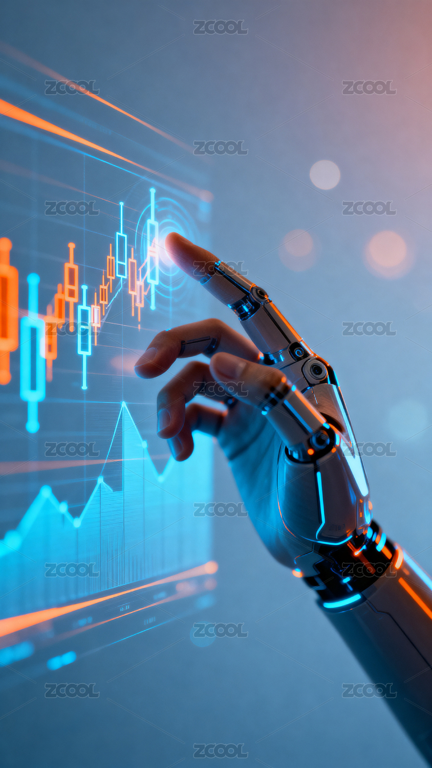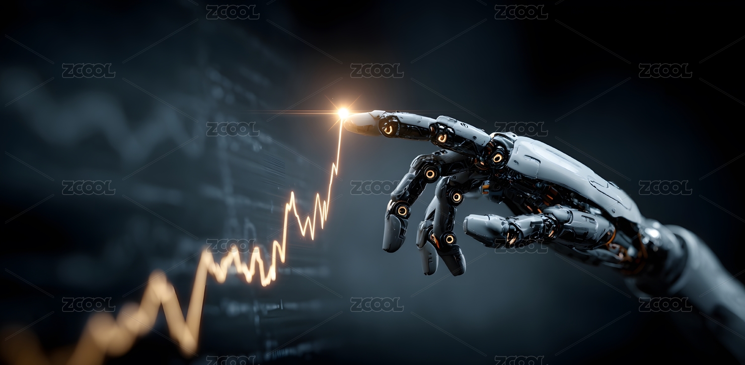 机器人手臂触碰增长曲线科技感