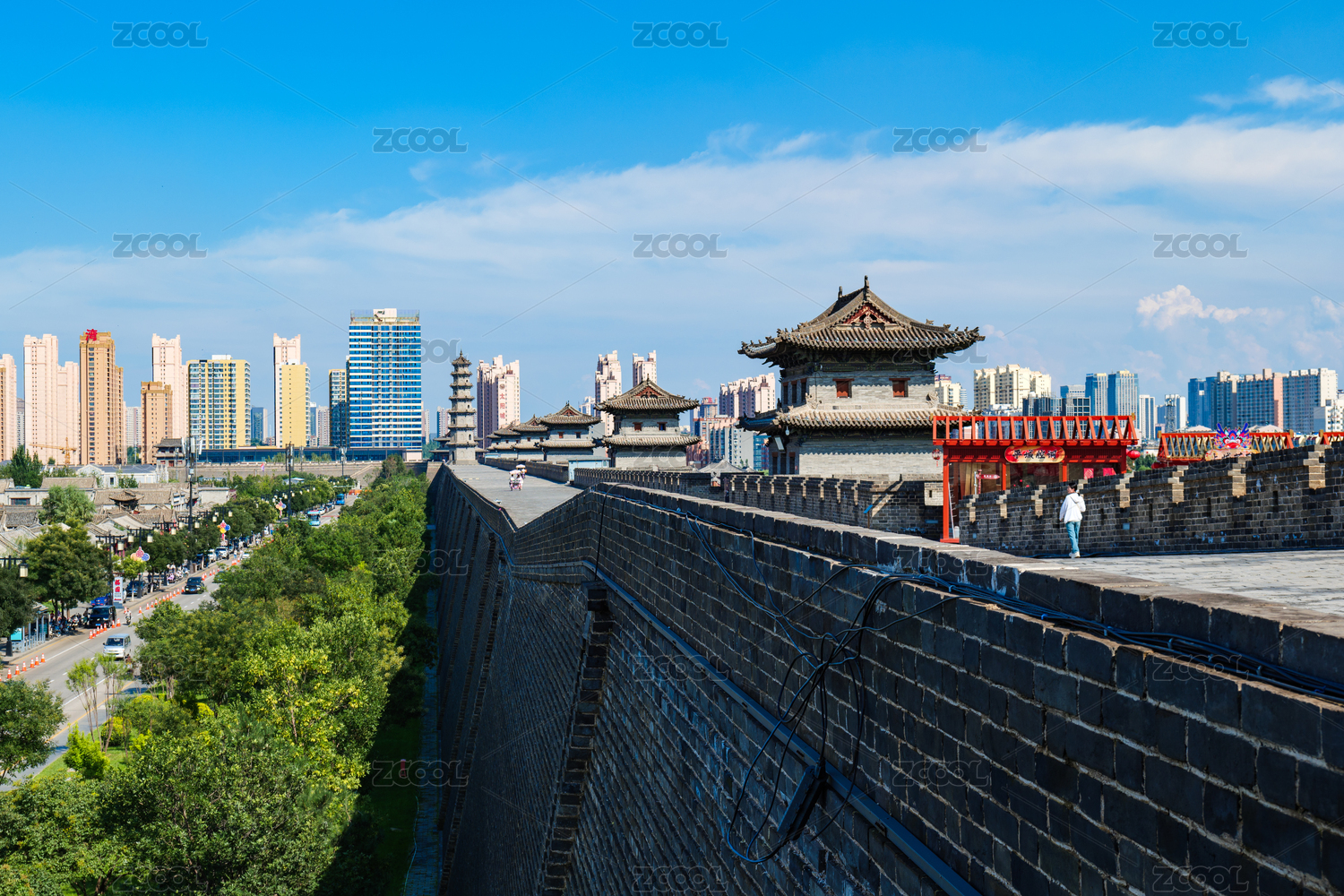 中国山西省大同市明代古城墙园林建筑