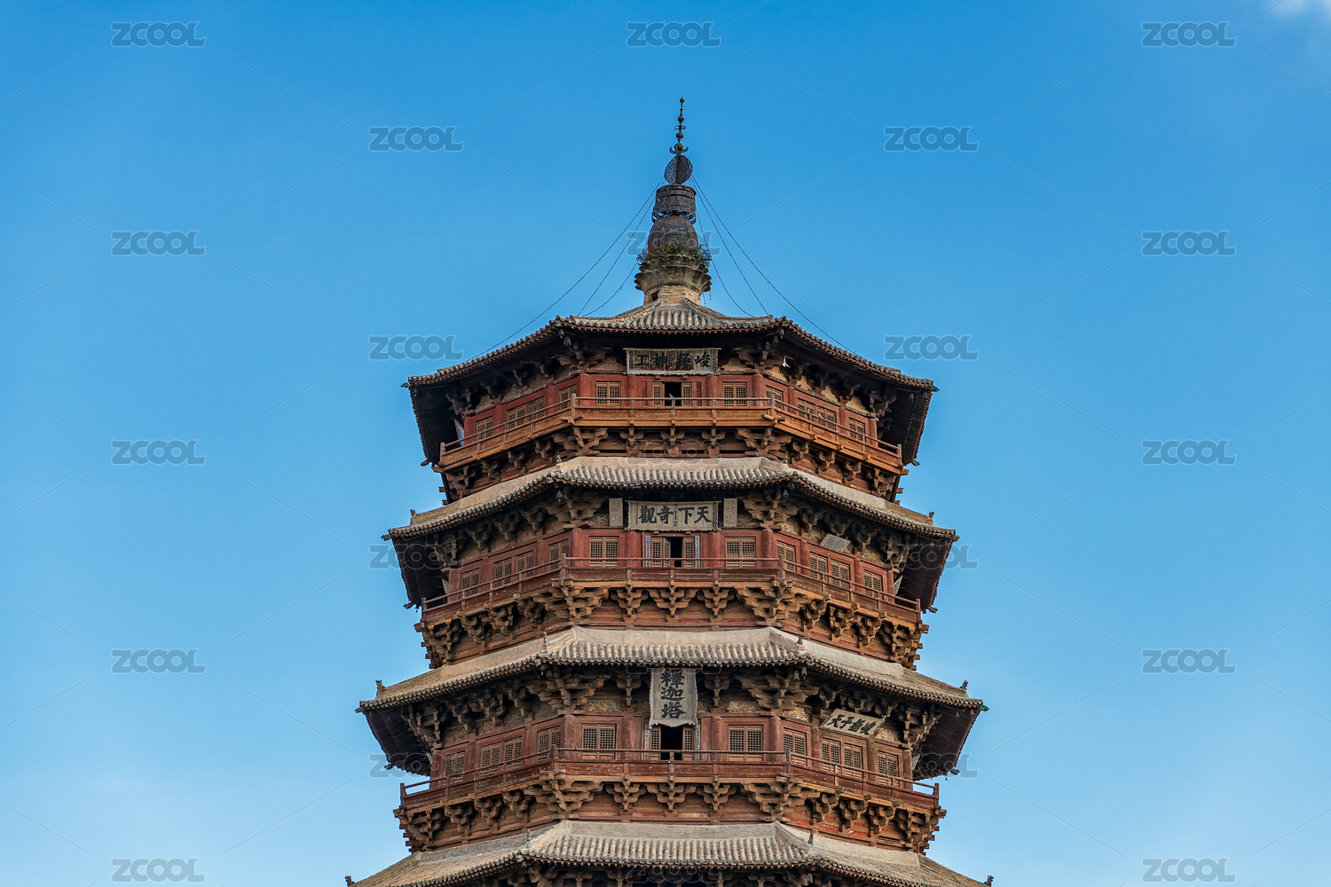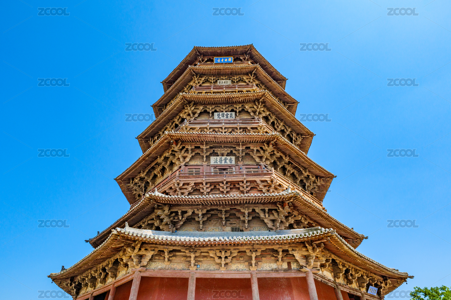 佛宫寺释迦塔,山西应县木塔全景仰视鸟白云