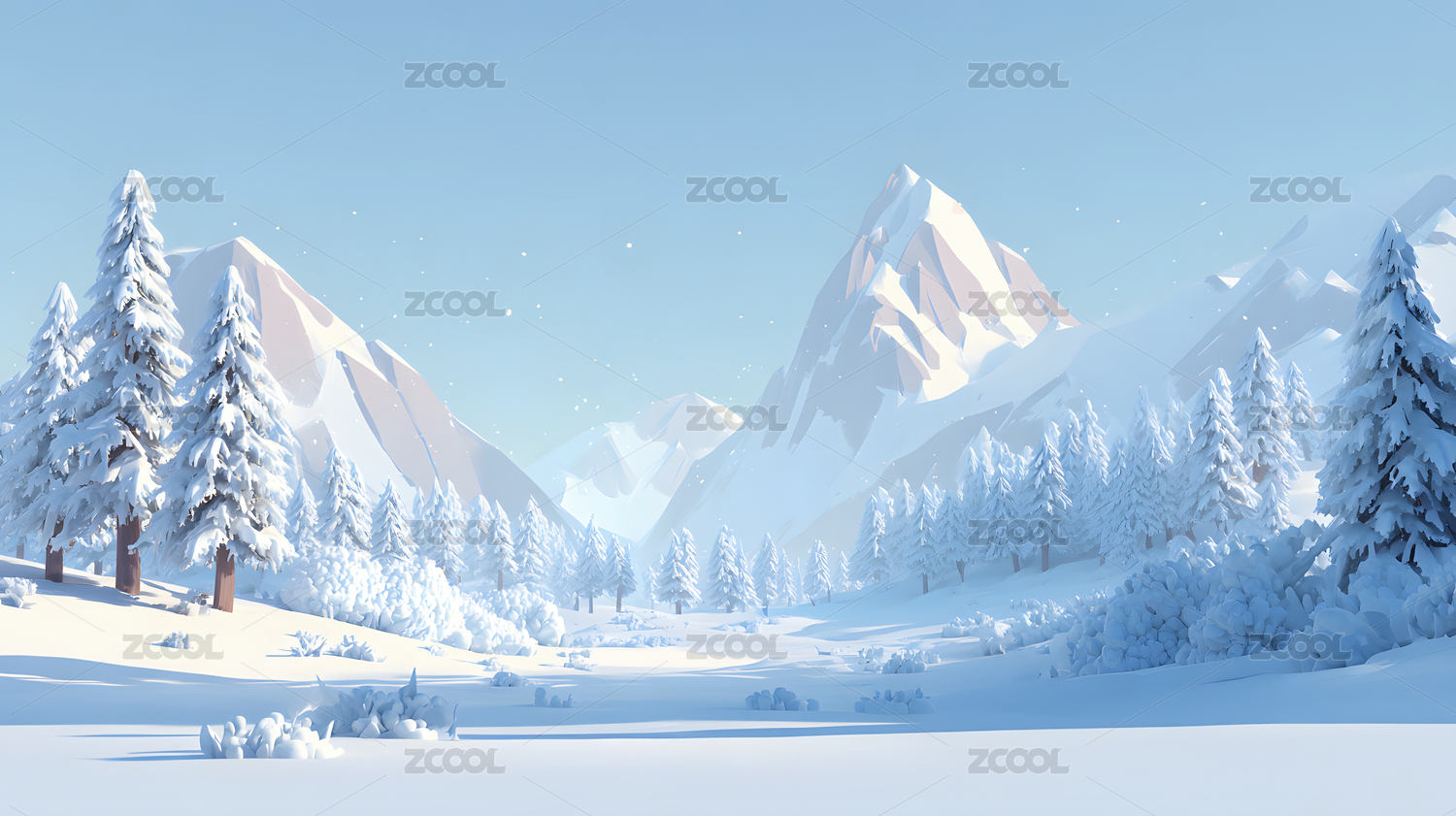 冬日雪景卡通山林画面