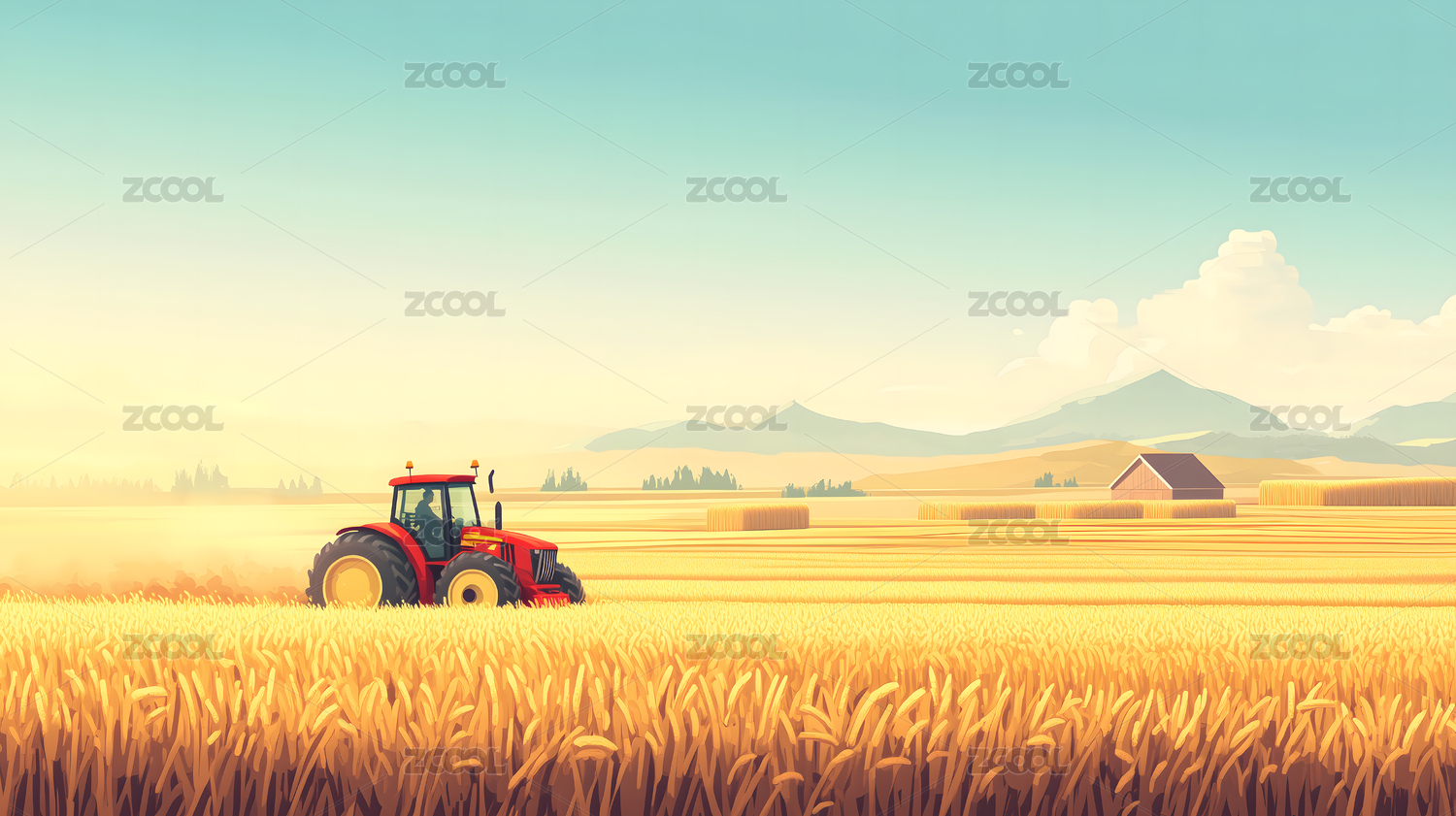 立秋节气秋天农业收获农田粮食成熟秋收插画