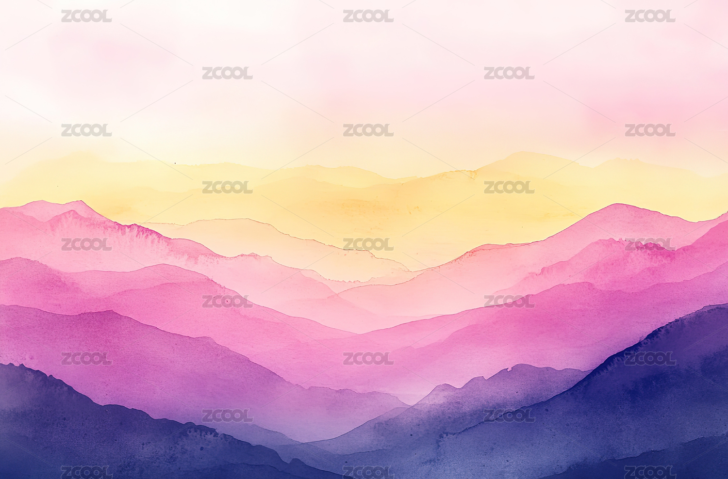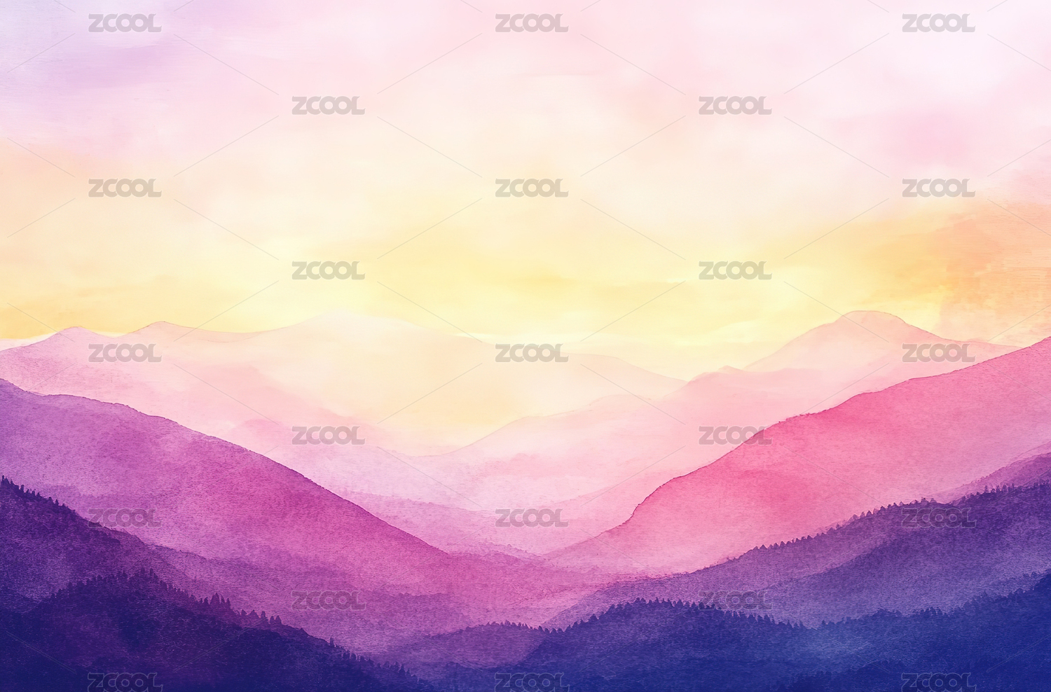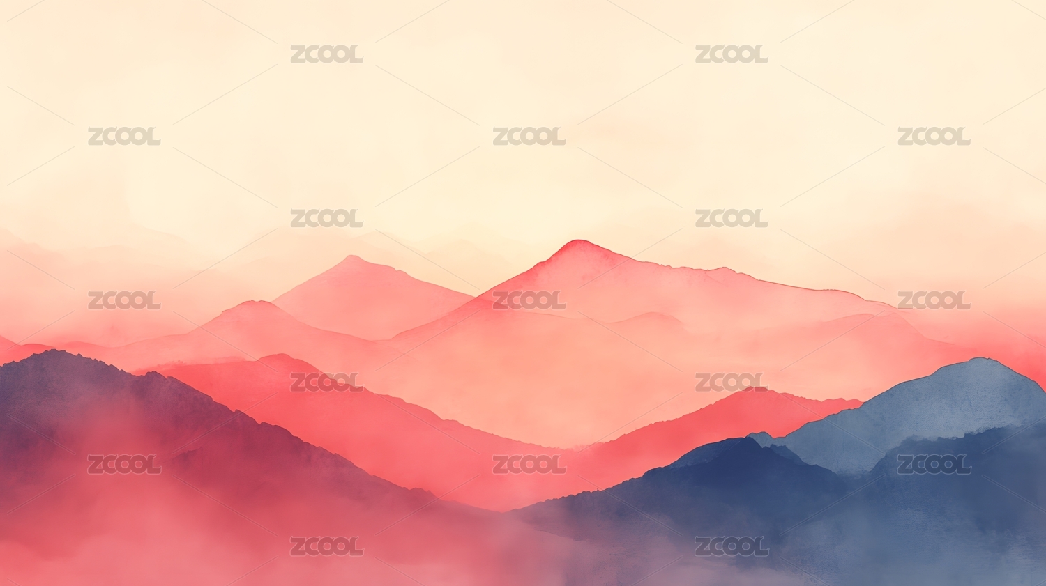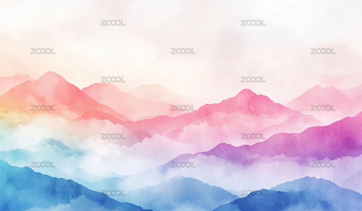 山水,山峦,云雾,飞鸟,远景,淡彩,水墨画,意境,朦胧