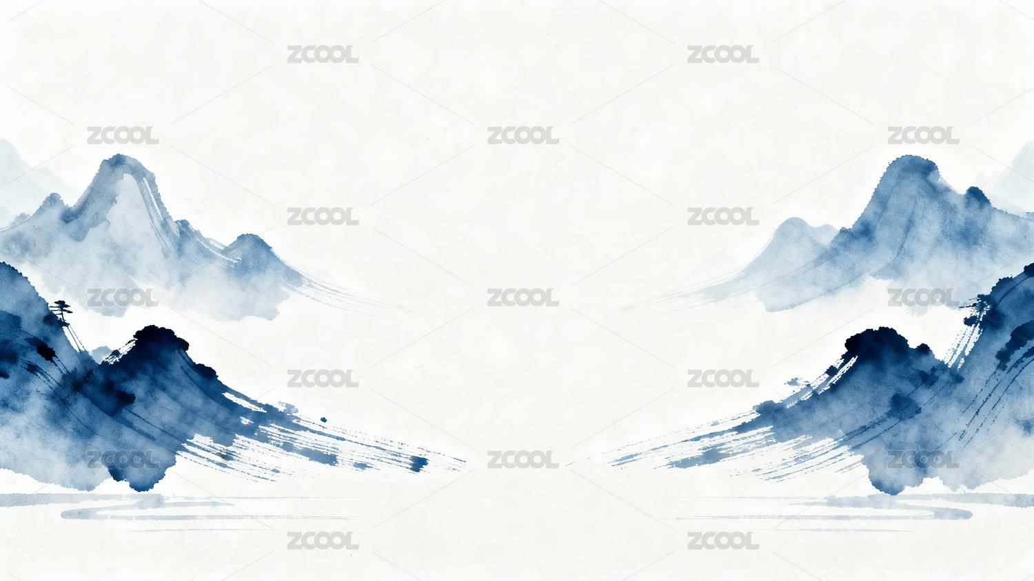 青蓝色流线山形水墨笔刷背景