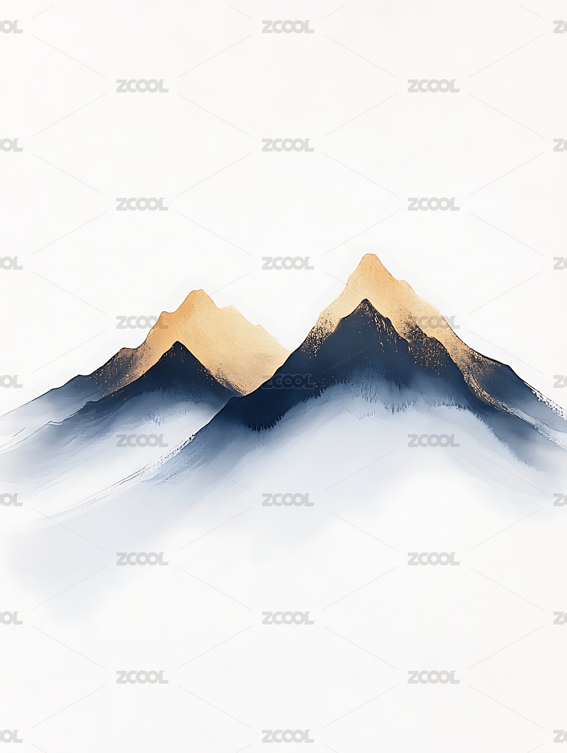 蓝金水墨山水画意境图