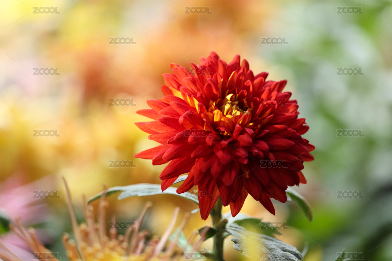 鲜艳橙红菊花叶点缀