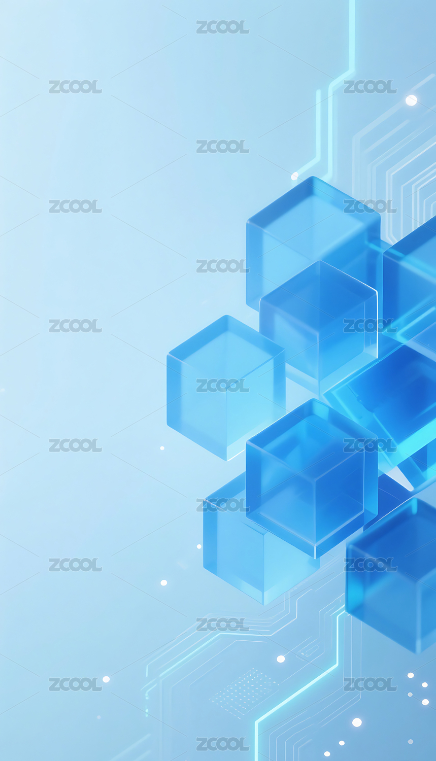 蓝色立体玻璃半透明方块背景