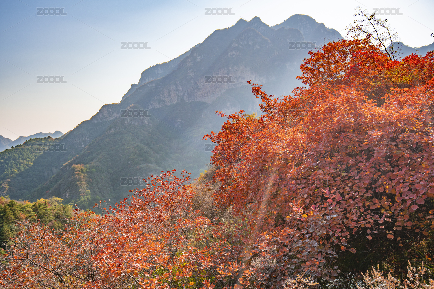 红叶,红色,秋天,山,树,乡村,田园,风光,早晨,植物