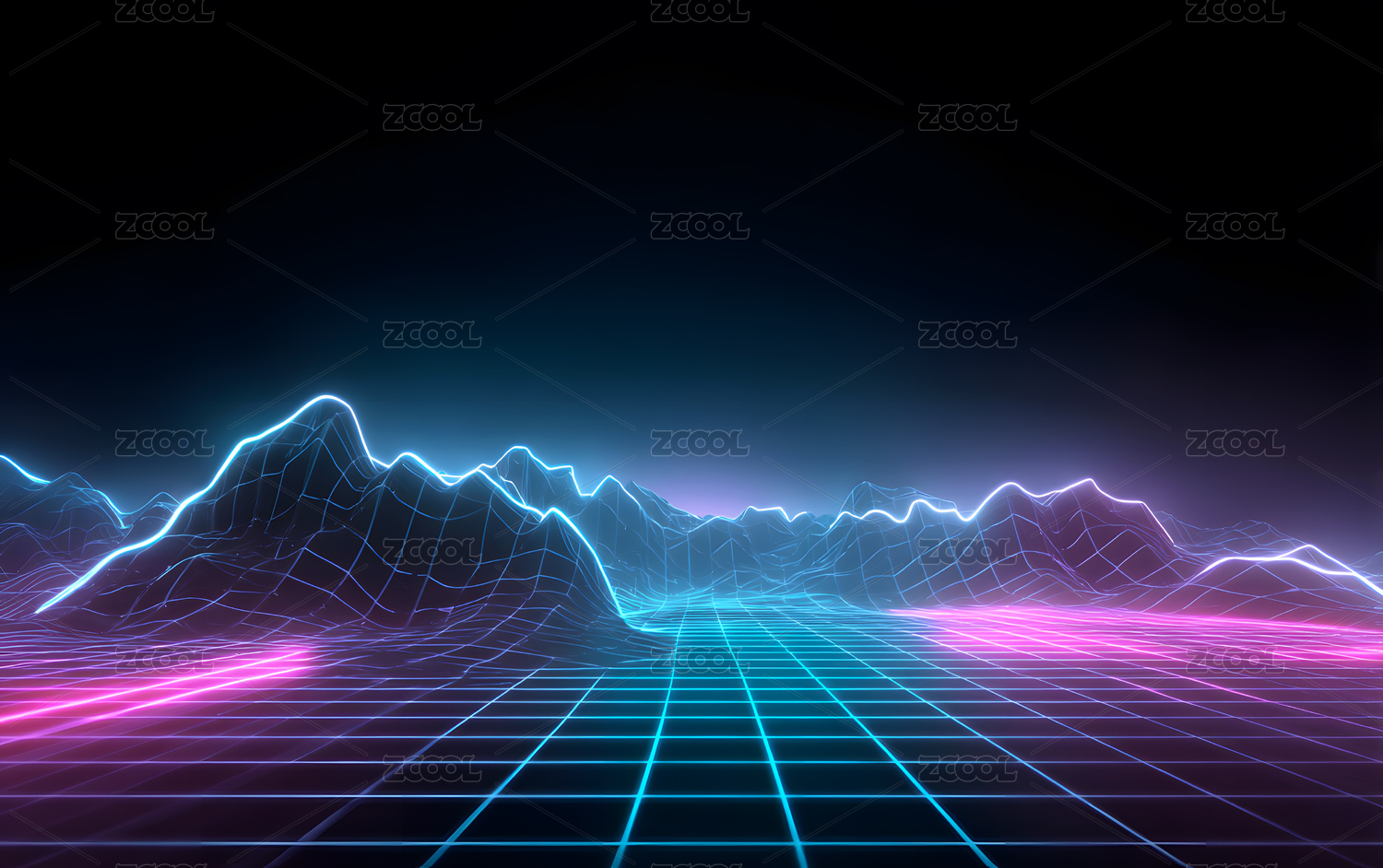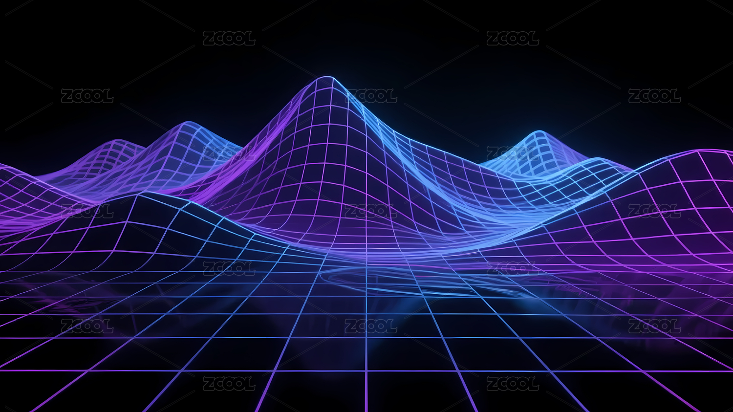 渐变,紫色,背景,线条,蓝色,科技,未来,网格,山峰,复古