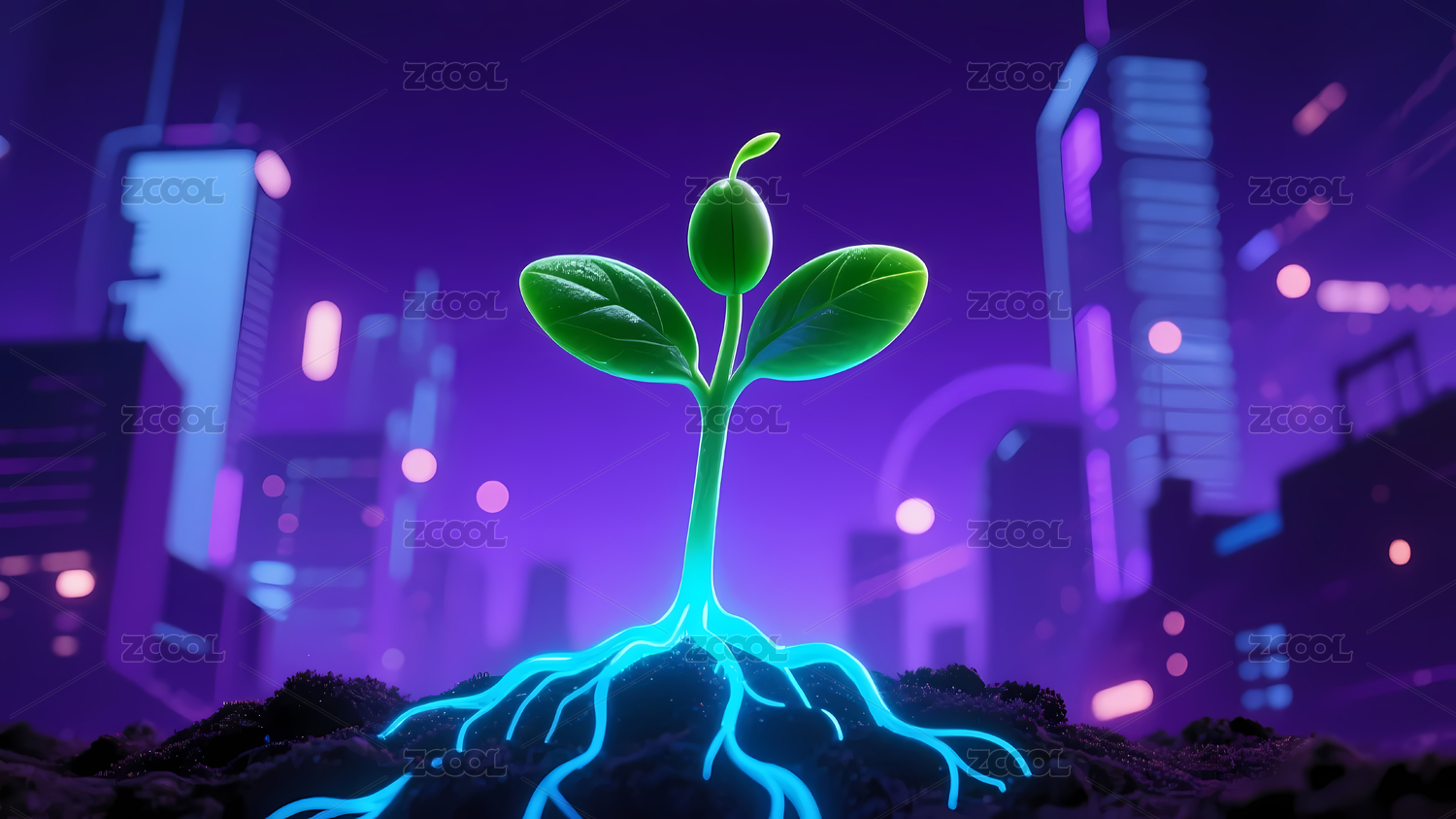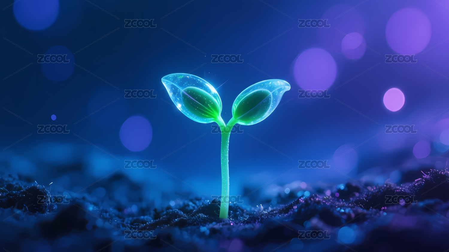 背景,深蓝,神秘,光效,紫色,霓虹,幼苗,生机,色调,根系