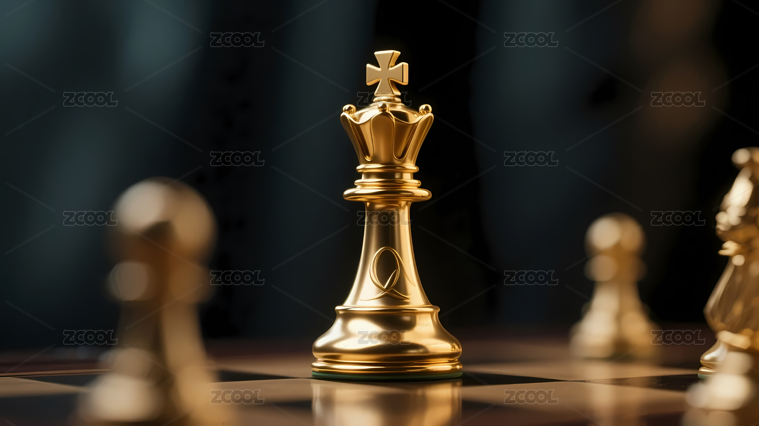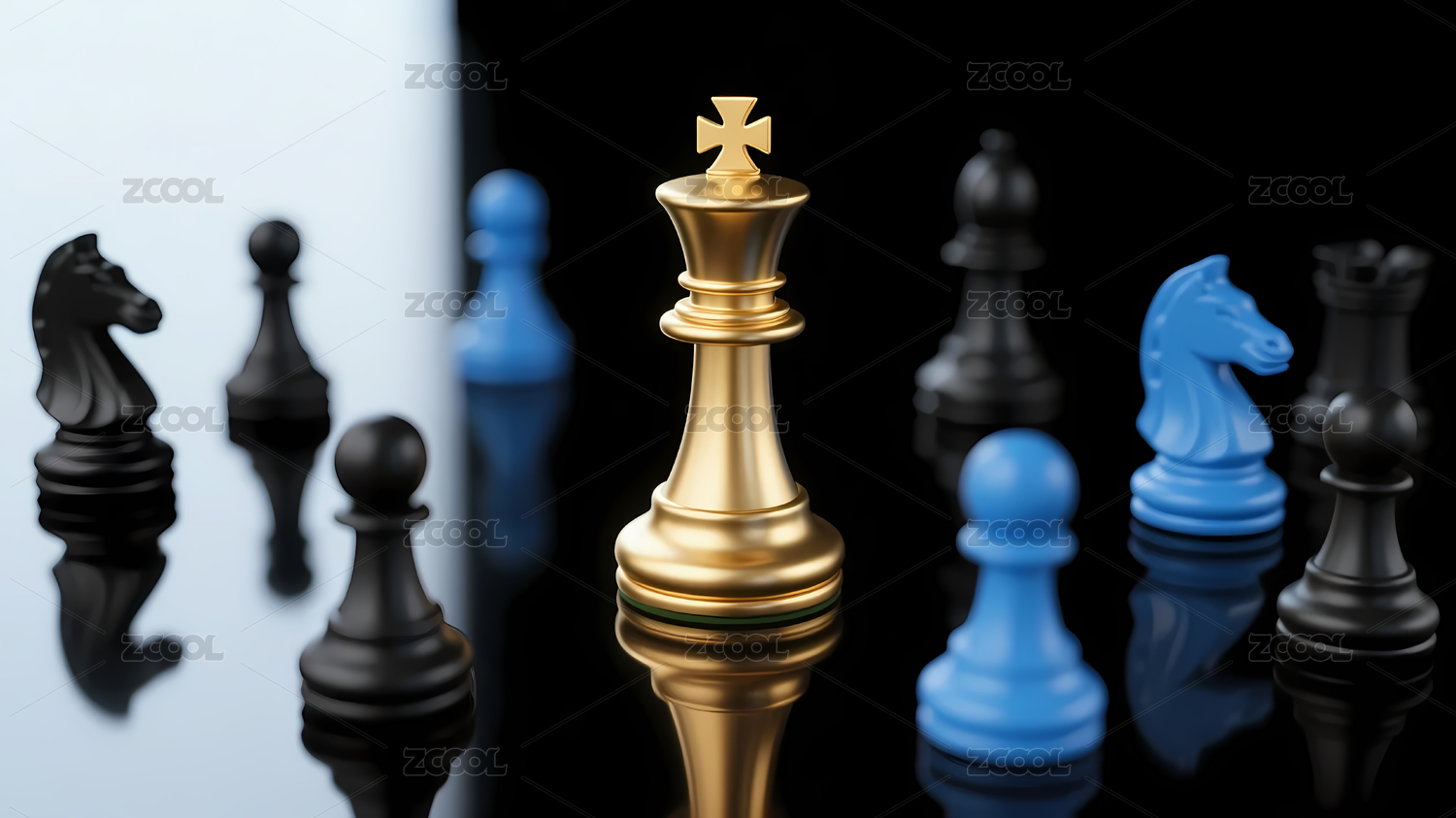 蓝色,渐变,黑色,金色,深色,立体,光泽,质感,棋子,国王