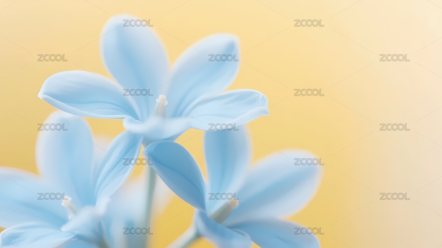 淡蓝花朵黄渐变柔和