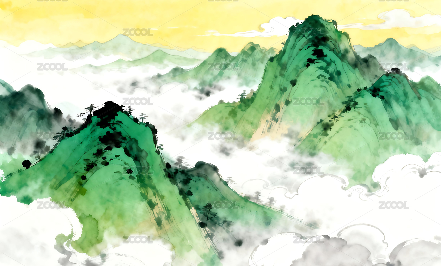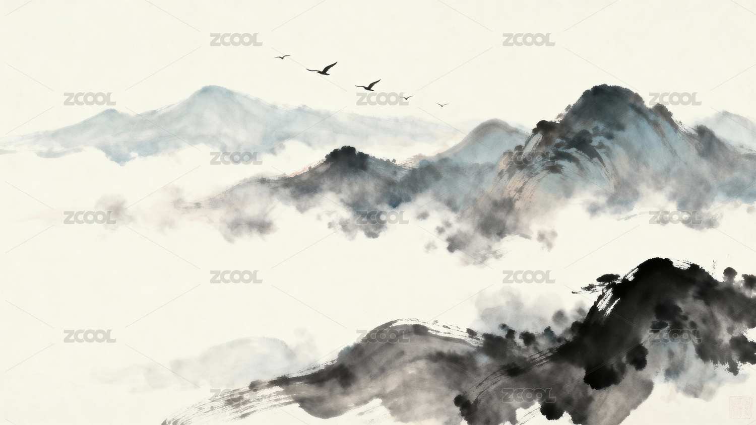 山水,水墨,云雾,山峰,自然,风景,中国,传统,绘画,意境