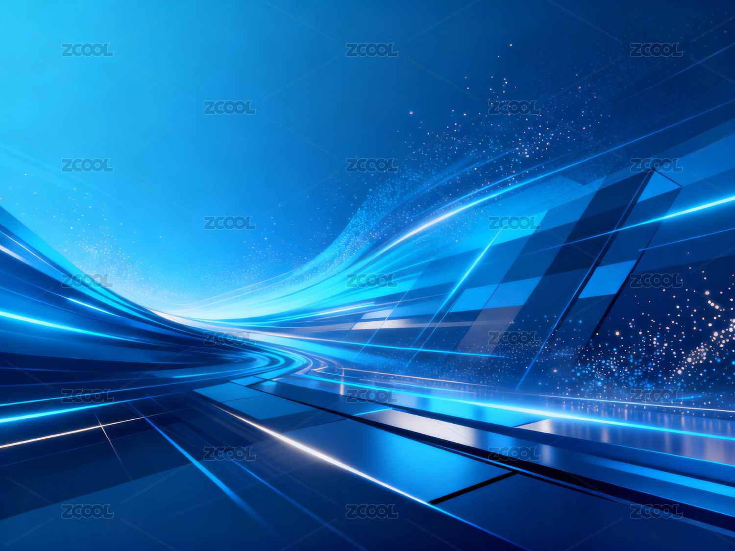 科技,蓝色,光效,几何,未来感,数字,电路,抽象,空间,光影