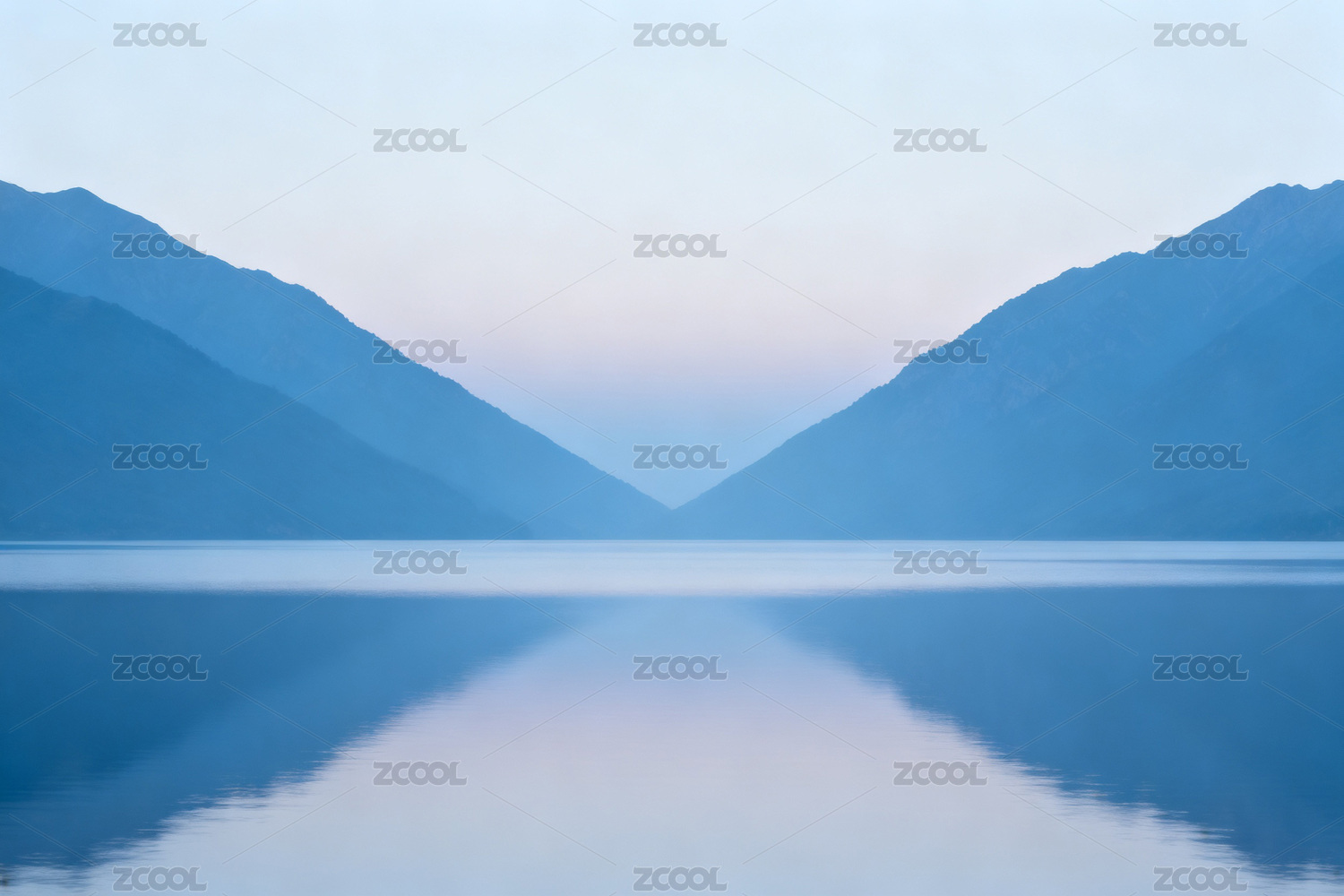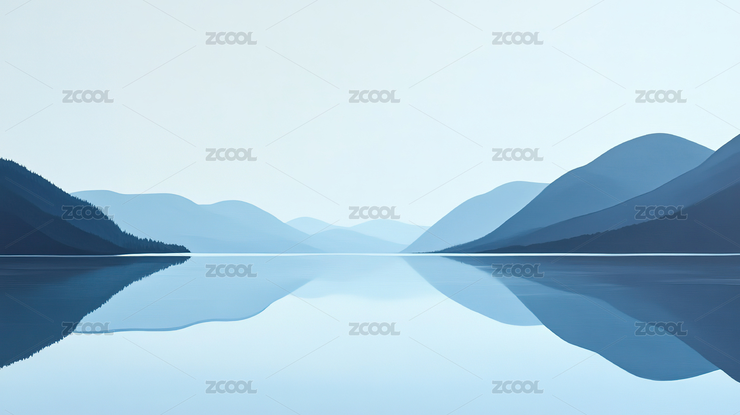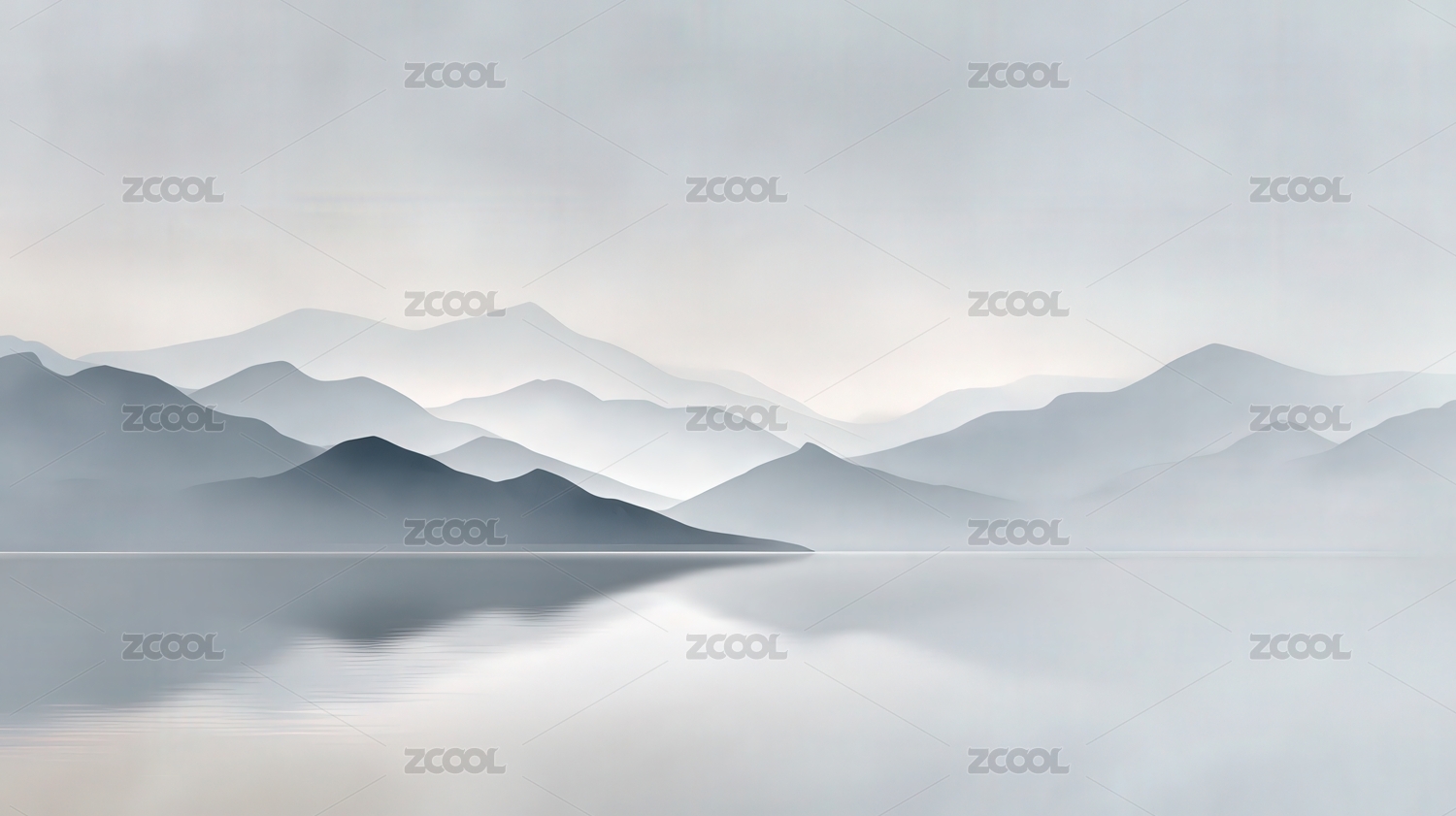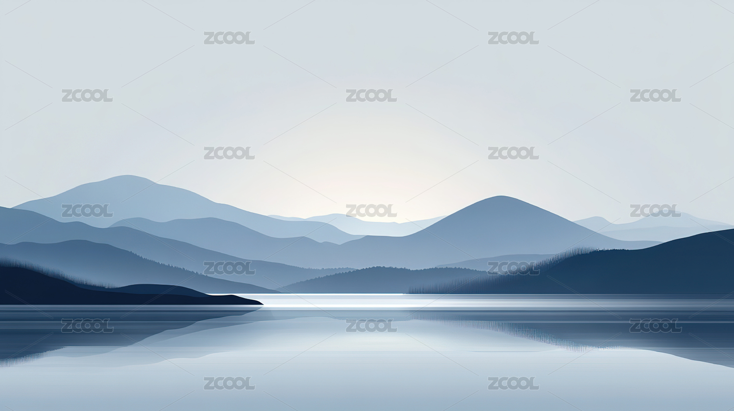 宁静湖面与远山层叠