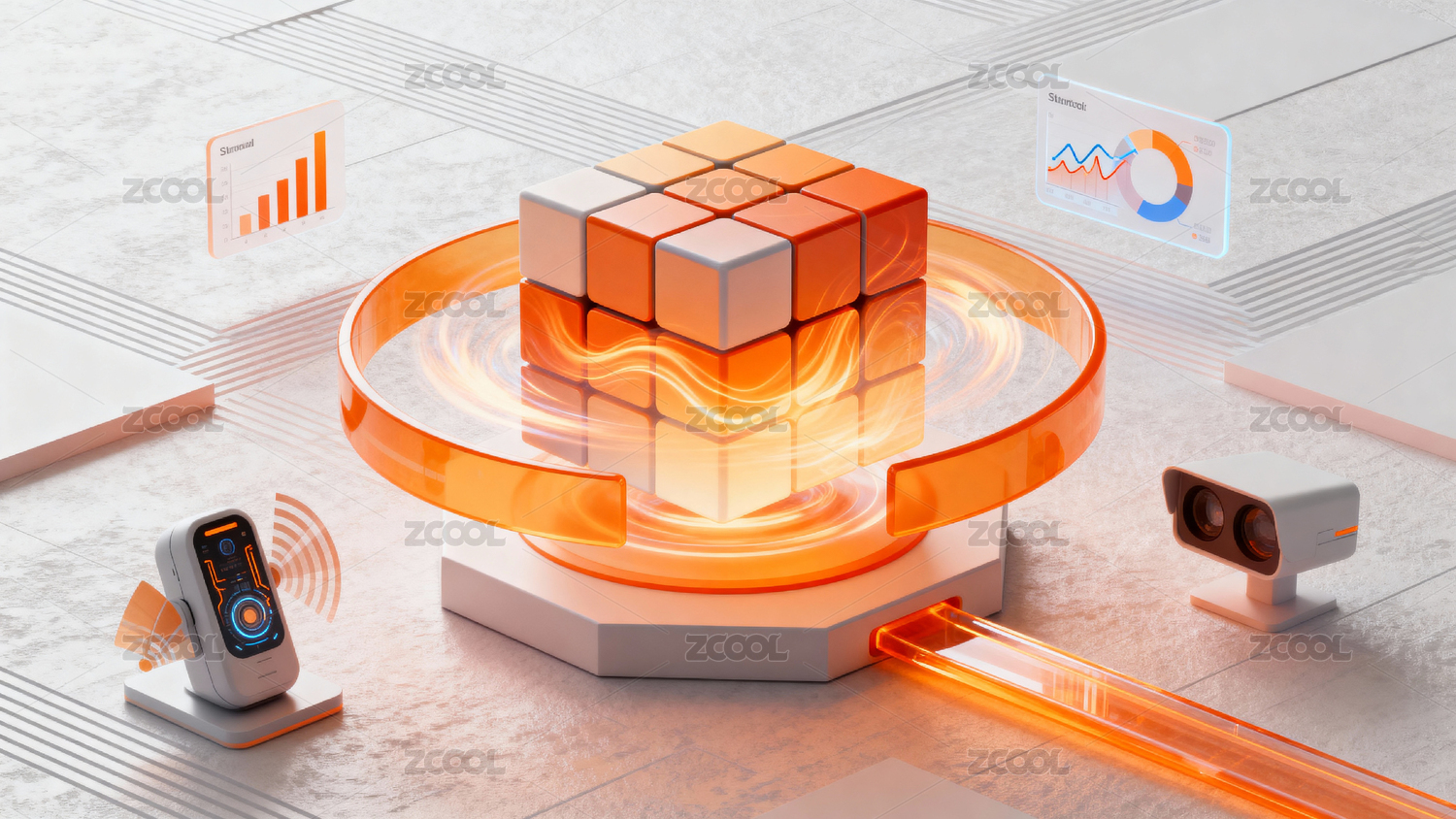 科技感魔方与数据图表展示